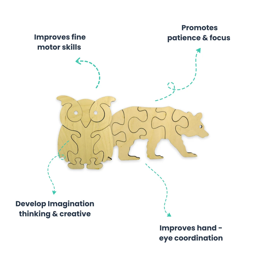 Jigsaw Animals Puzzle Learning For Toddlers(Bear & Owl)| Educational Toy For Pre-School And Montessori Kids