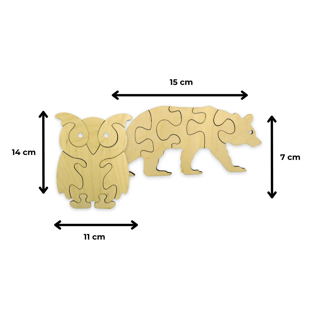 Explore the wooden animals jigsaw puzzle, Set of 2-Bear & Owl, perfect for little hands to manipulate. Place the pieces according to matching shapes to complete the animal. It is a great introduction to shapes and for developing fine motor skills. Made from best quality wooden material and child-safe , it is the best gift you can give to your little kids.