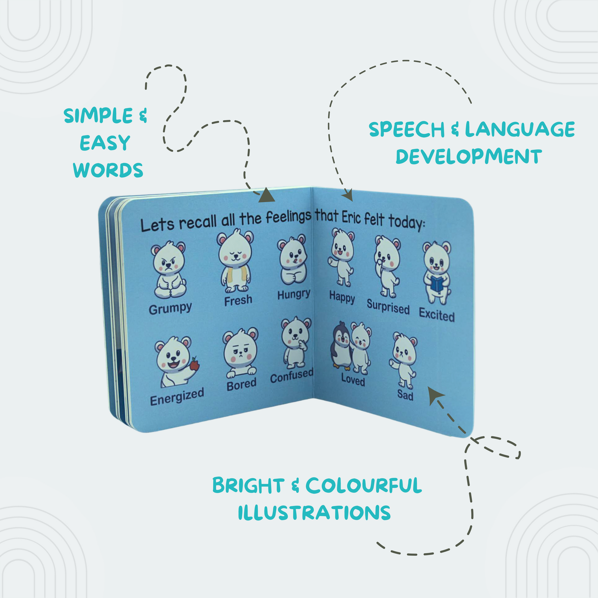 Help your toddler learn about emotions with this amazing book, Eric's Mood. This colourful, interactive book helps children understand their feelings and develop a love of reading from a young age. With simple and fun illustrations, each page teaches about an emotion. The book is great for language development, vocabulary building and young children's social and emotional development.