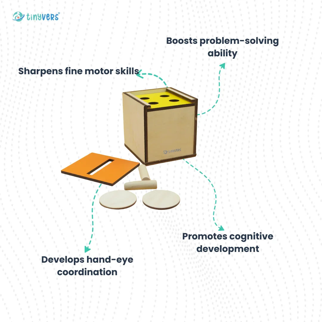 The Montessori Coin and Peg Box with Coin & Peg Lids is an engaging and one-of-a-kind educational tool for children. Its 2-in-1 design features a coin and a peg, challenging kids to creatively pass the coin through the slot and peg through its respective hole. The toy's sturdy construction and portable design make it perfect for active play, while also being easy to store and transport.