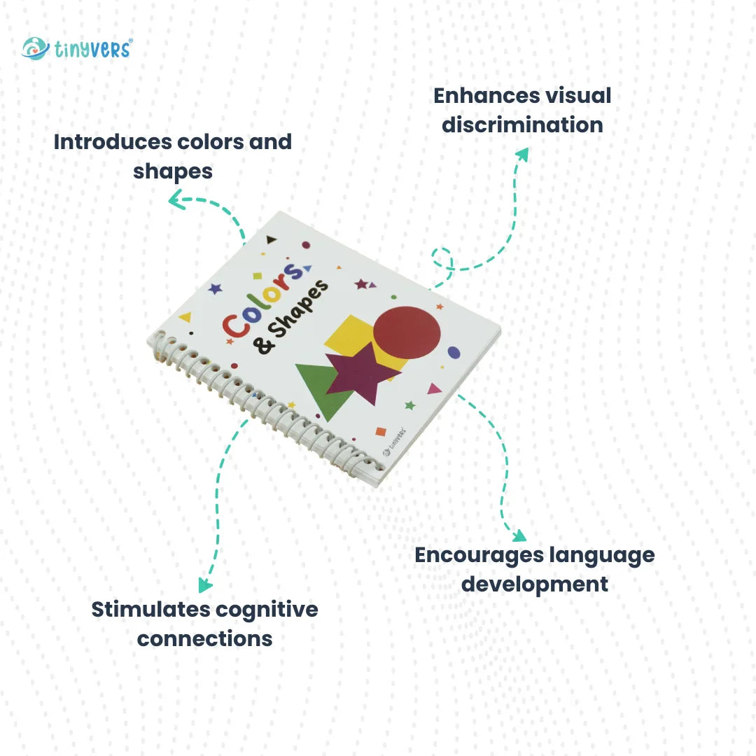 Explore the bright world of colors and shapes with "Colour & Shapes Book." This educational book helps children recognize and name colors and shapes, laying the very basic foundations for both early math and artistic skills.