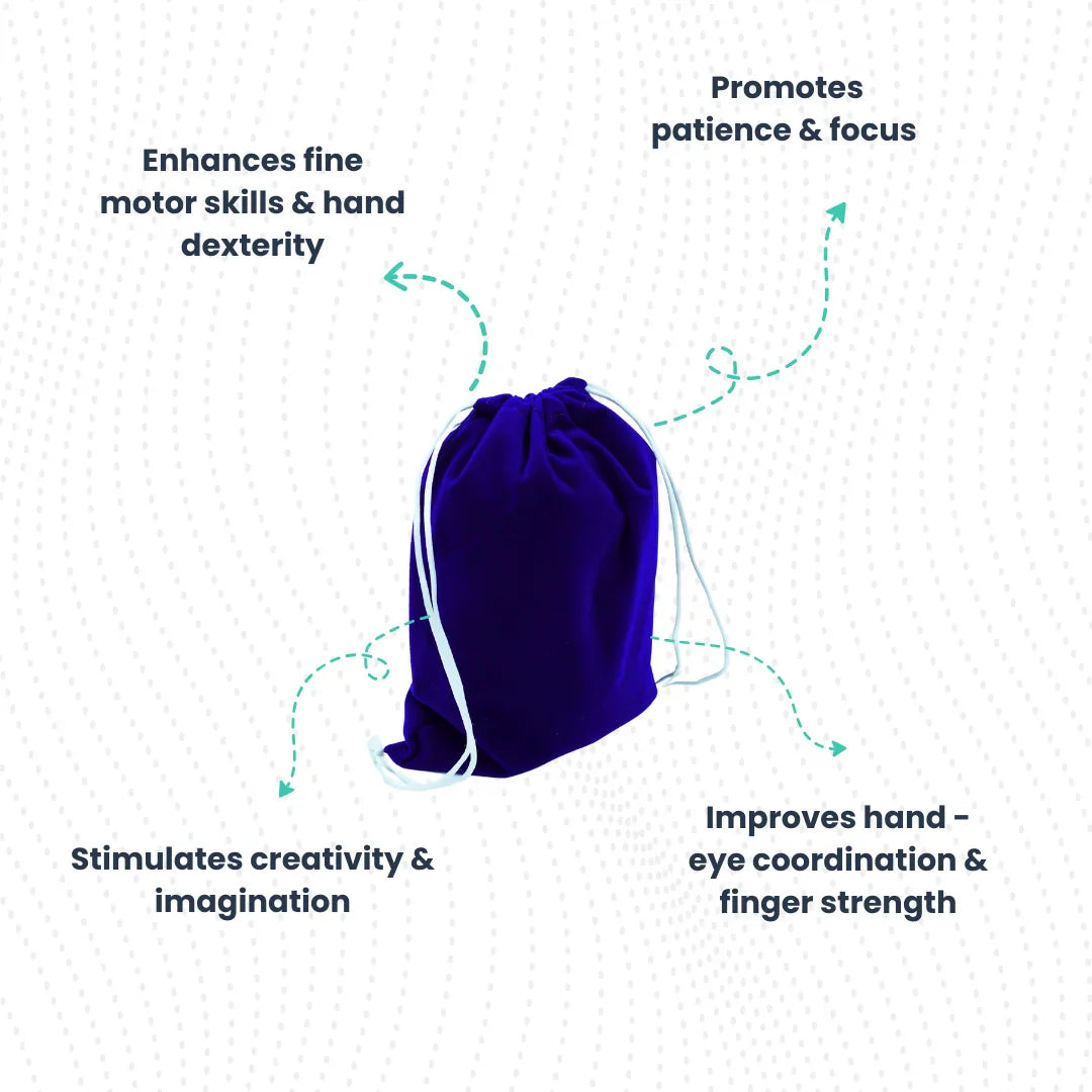 • Picking up and manipulating the objects in the bag can help develop fine motor skills.