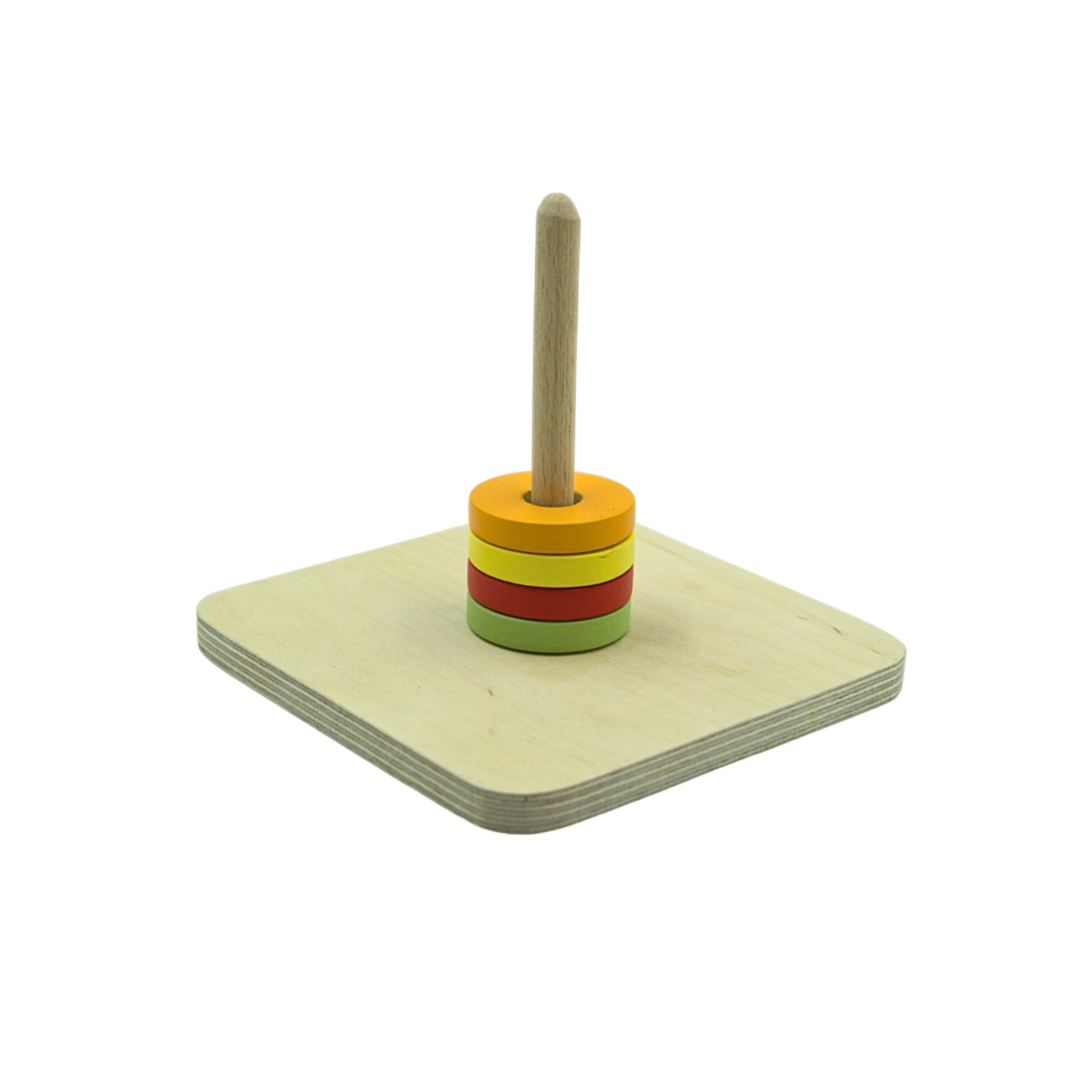 Introduce your child to the joys of stacking and sorting with this colorful and durable toy set! Featuring a wooden base with a vertical staker and four vibrant discs, this high-quality set is perfect for both playtime and learning. The discs slide smoothly along the staker, providing your child with endless entertainment and stimulation while promoting their cognitive and motor skills.