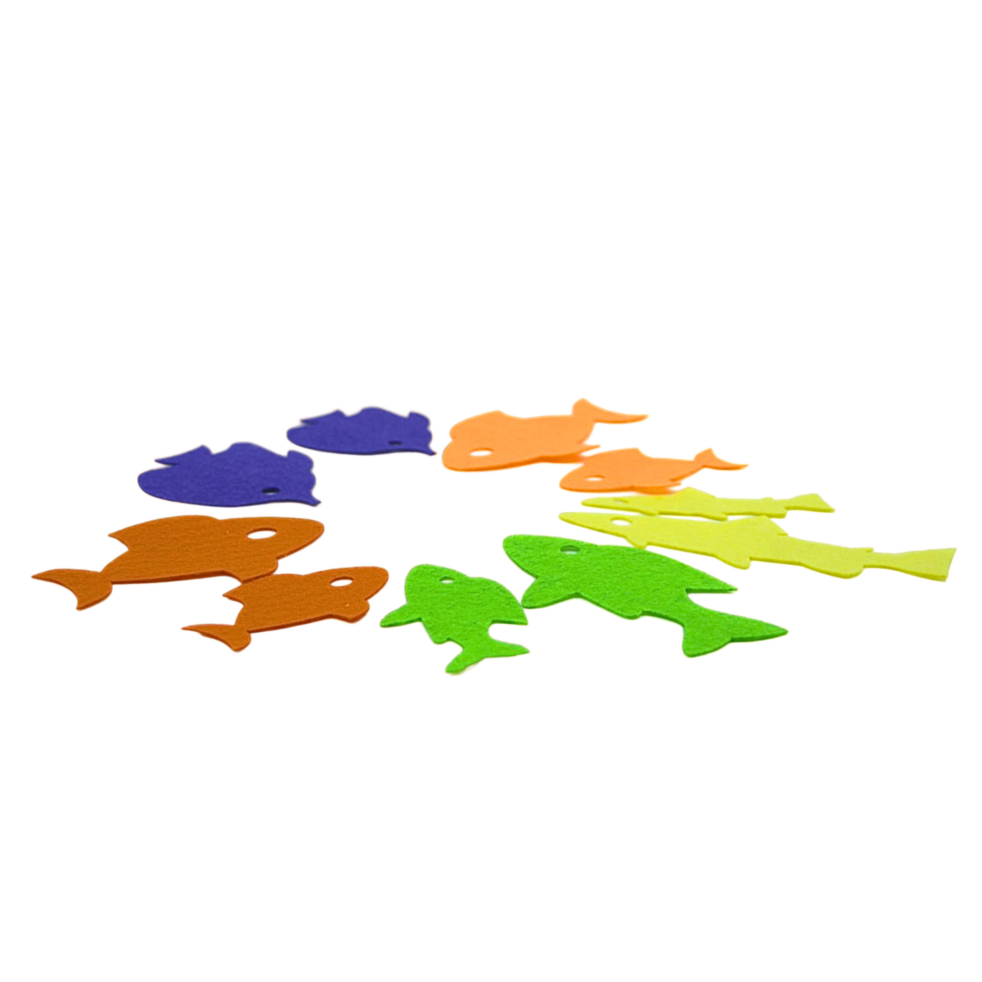 • The set includes multiple fish shaped felts of different colors, which can be used to teach children basic counting and sorting skills.