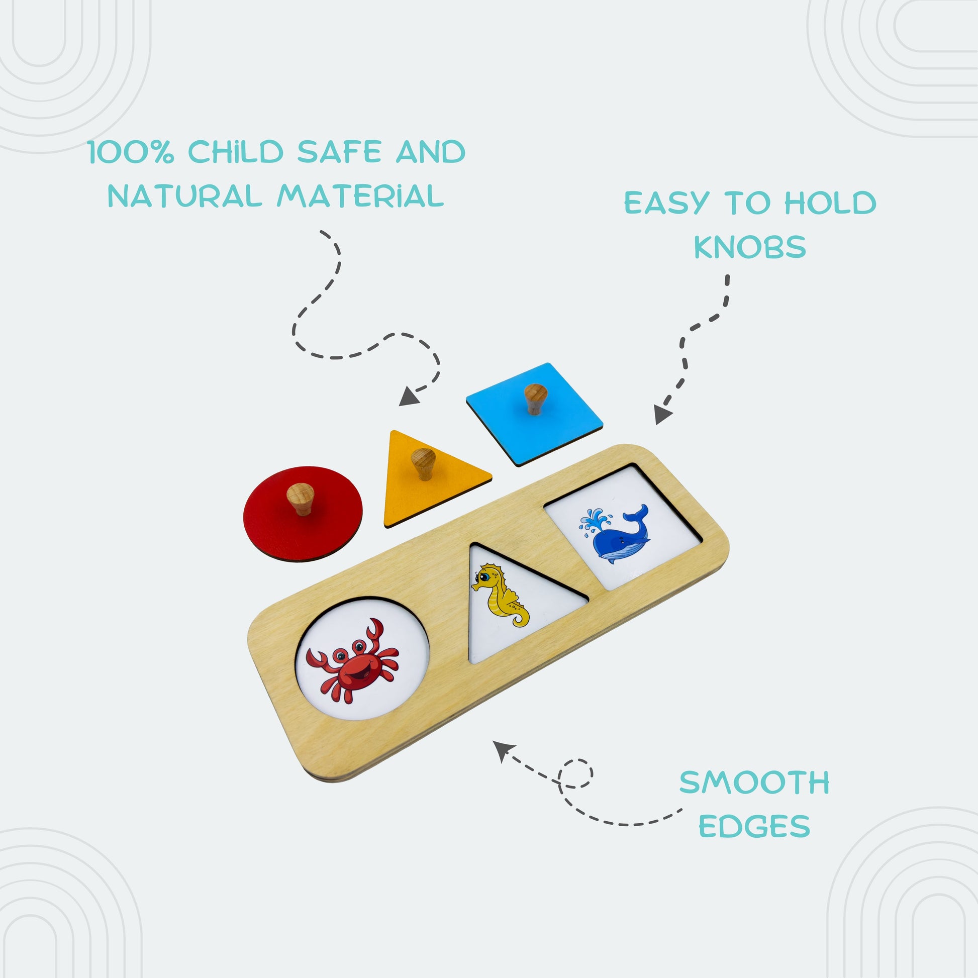 1. Begin by showing your child the wooden geometric puzzle