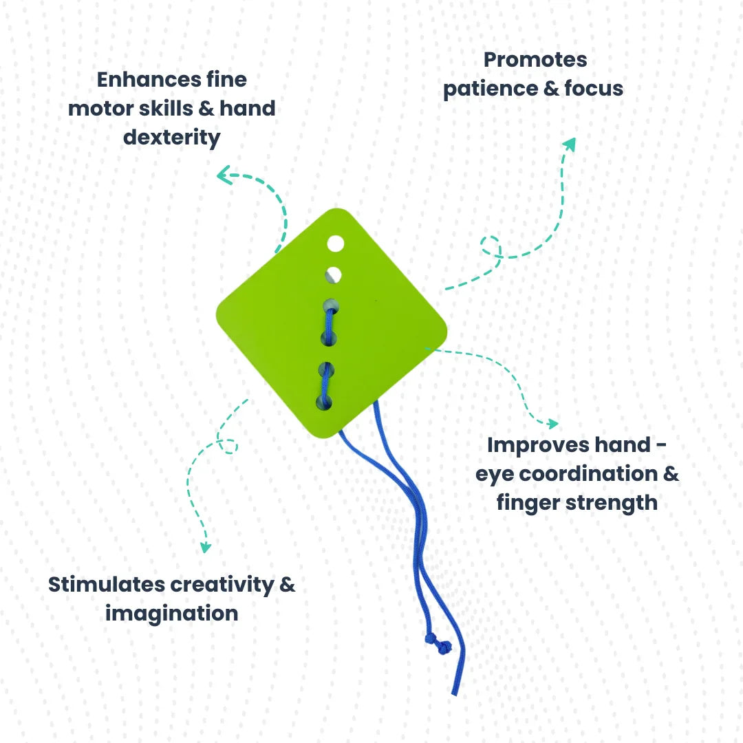 • Engaging in the task of lacing and threading promotes concentration and the ability to stay focused on a specific activity.