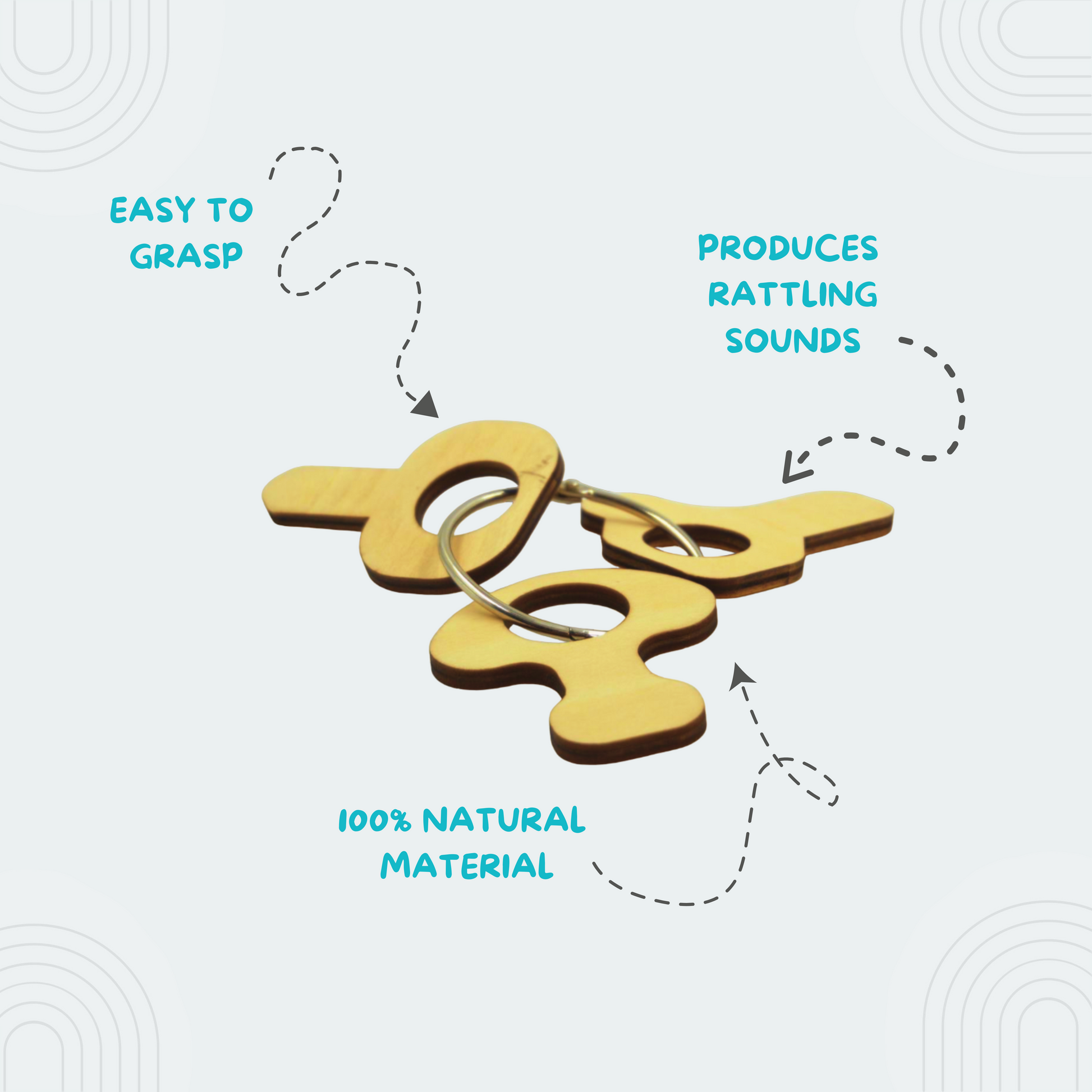1. Show your child the Wooden Rattle Keys and let them feel and examine it.