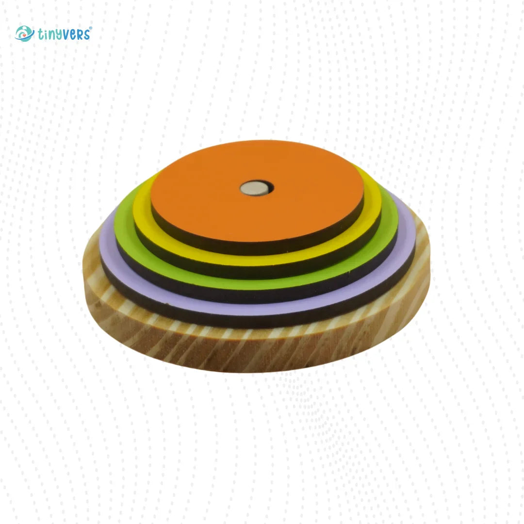 2. Choose a stacking disc from the set with a unique stacking pattern.
