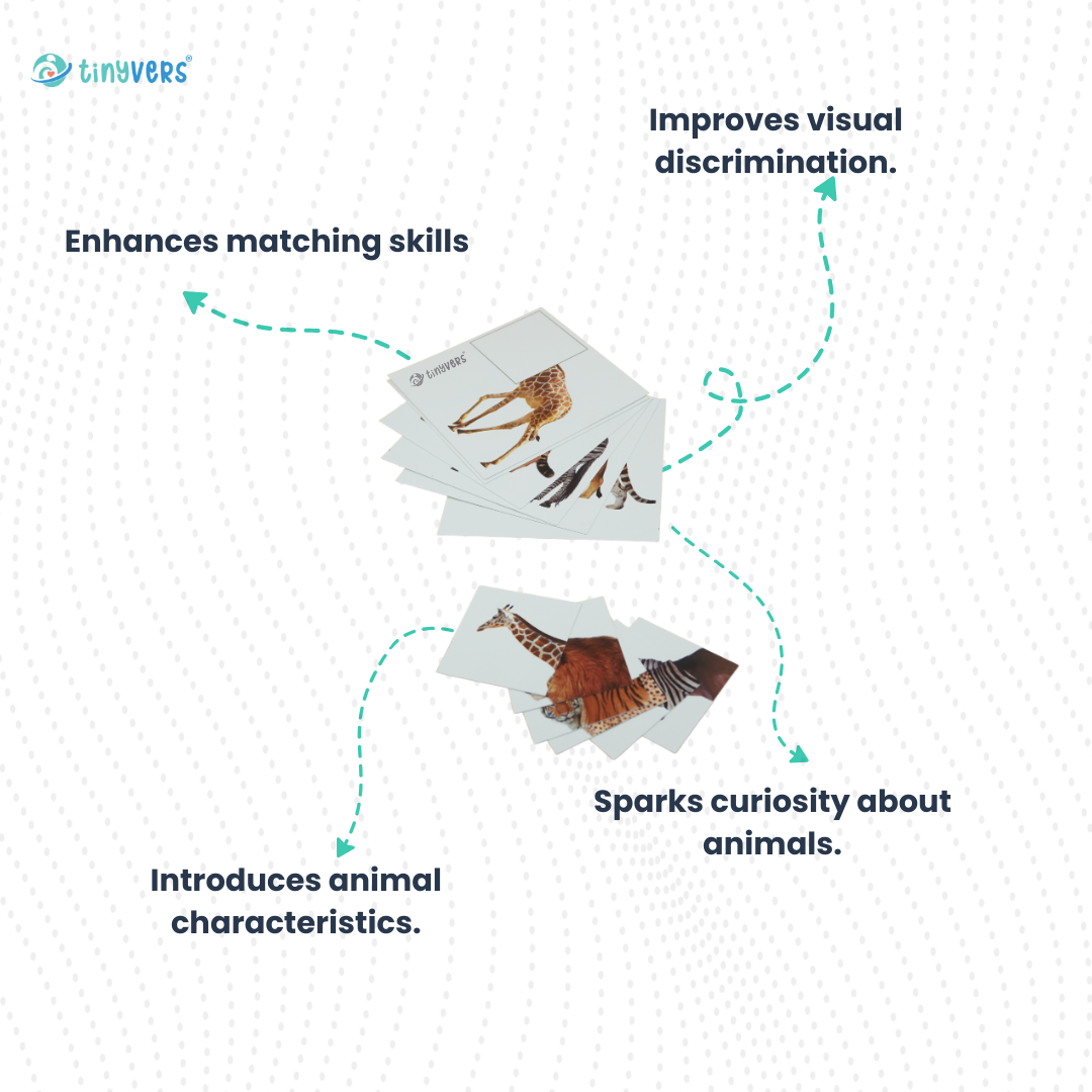 3. Show your child how to identify the different face & patterns on each card, and how to match them with the correct animal.