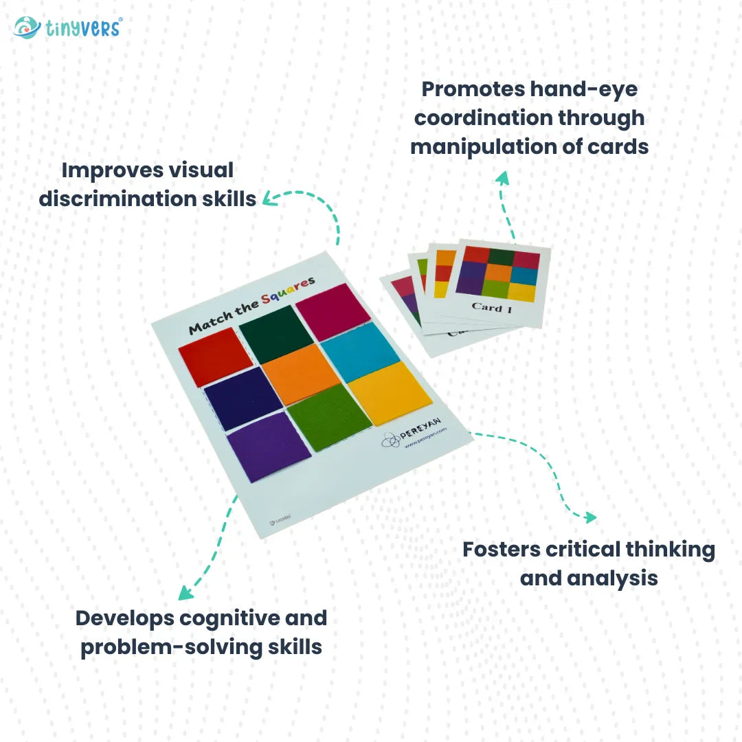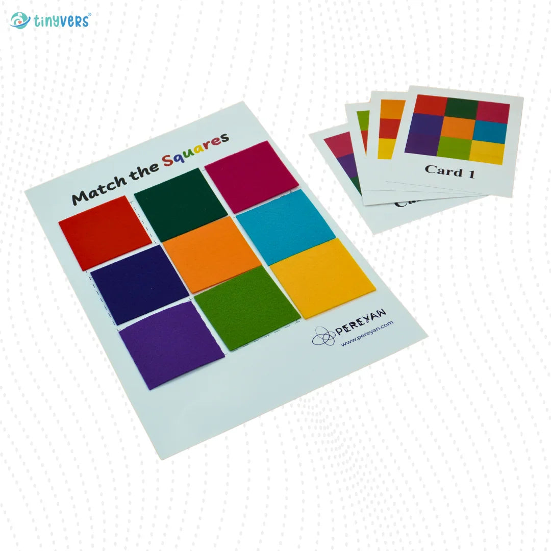 Engage in pattern matching fun with Match the Squares, by providing your children 8 unique patterns that needs to be matched respectively & created as it builds cognitive skills with every match with the pattern cards & felt squares!