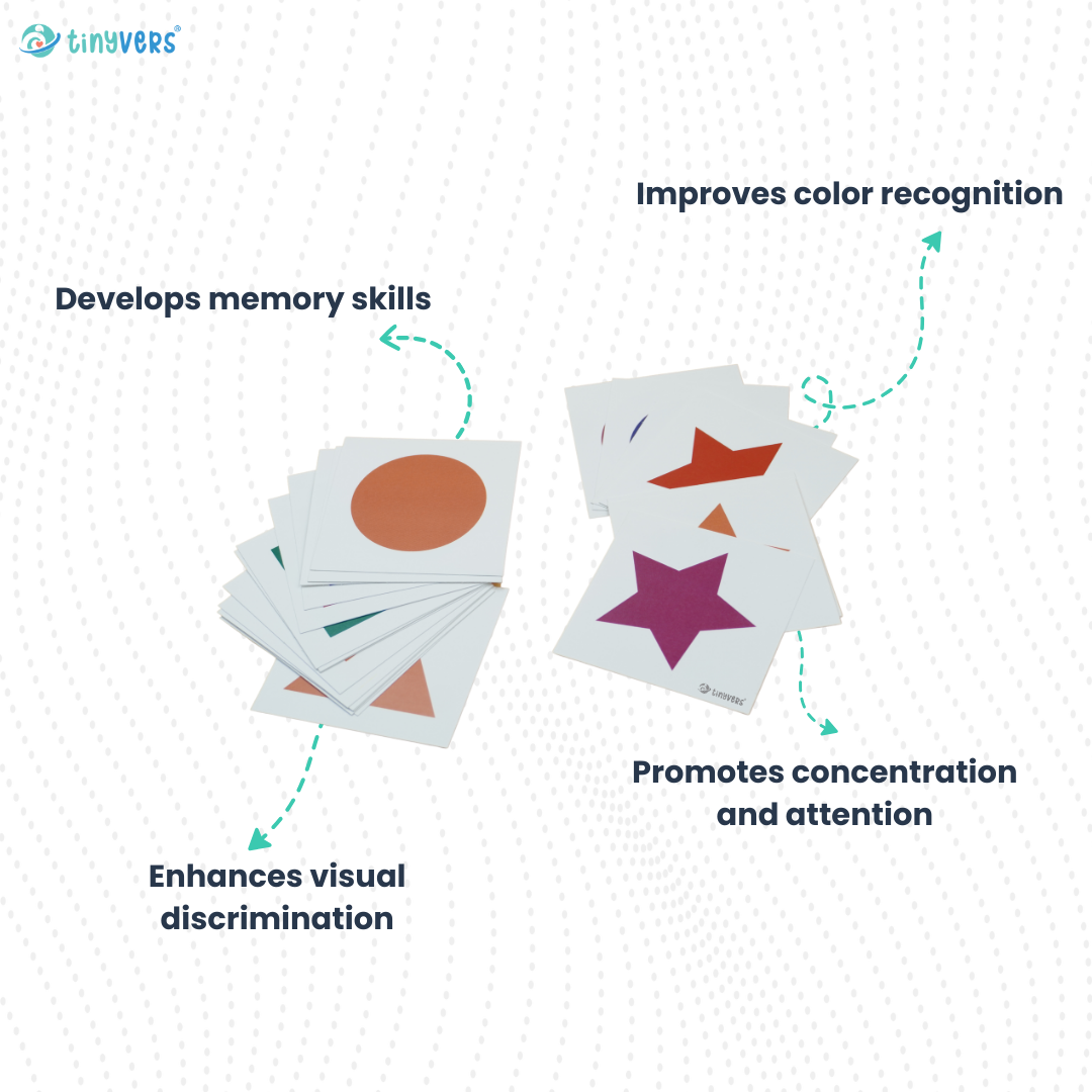 3. Show your child how to identify the different colors on each card, and how to match them with the correct shape.