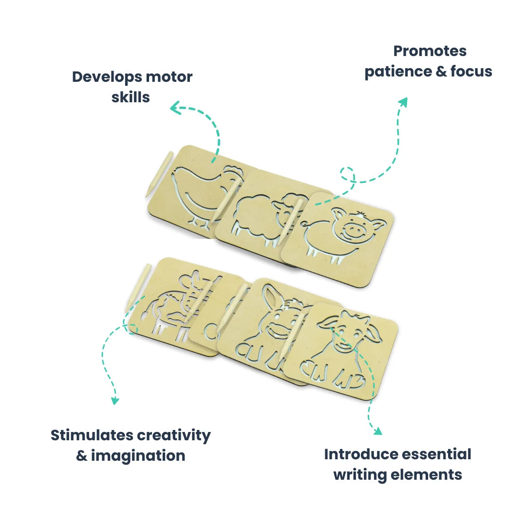 Montessori Farm Animals Tracing Board Learning Toy Set 1| Motor Skill Development Educational Toys( Set of 7)