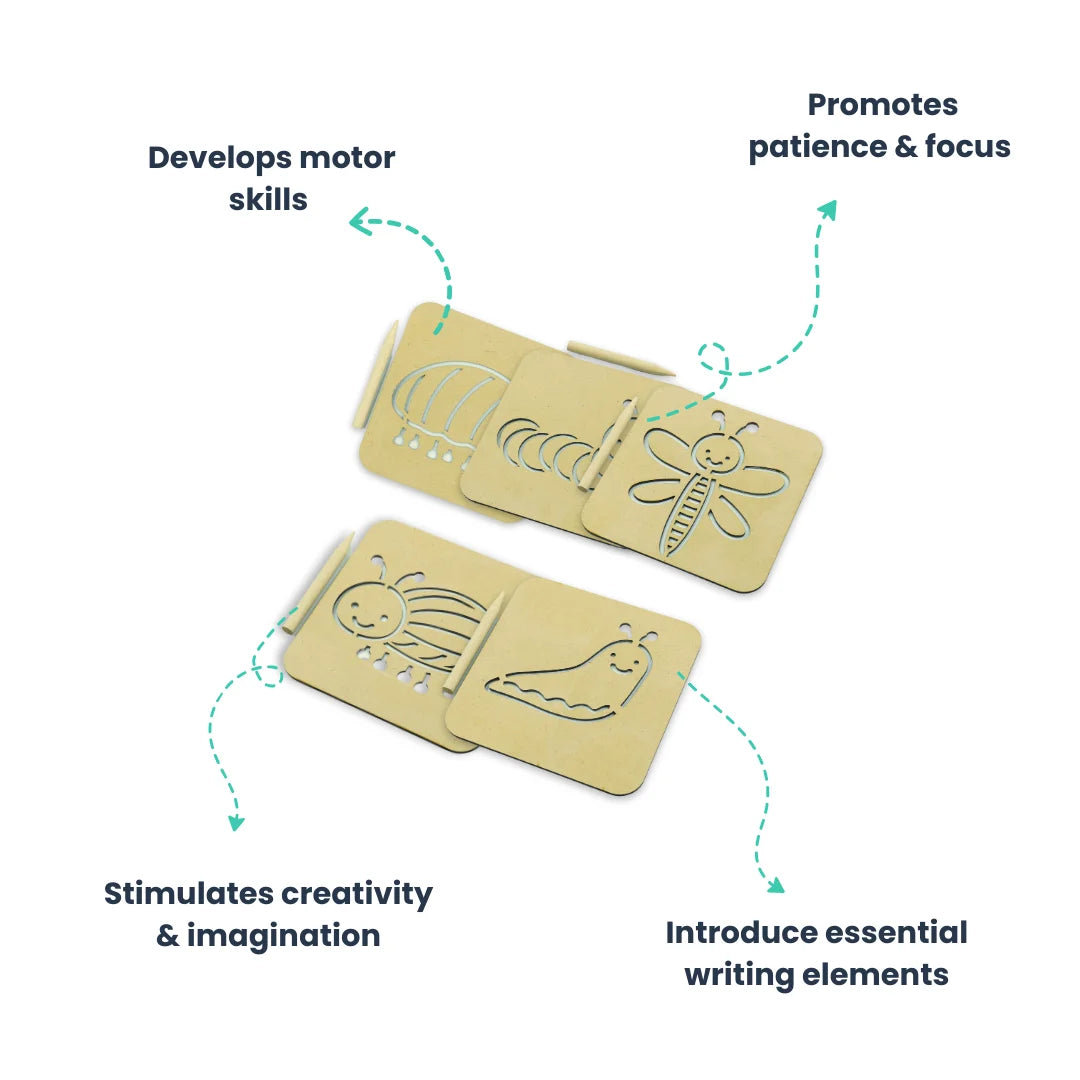 Explore the power of pre-writing skills development Toy and motor skills enhancement with our Wooden Line Tracing Stencil Board. Designed as a valuable Montessori learning resource, this set of 7 prewriting tracing boards is perfect for young kids for early learning development and to start their writing journey.