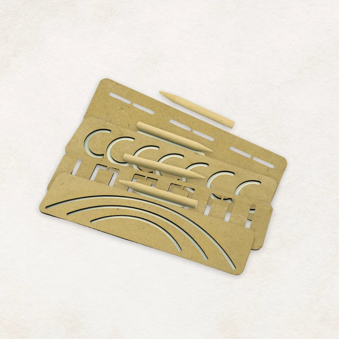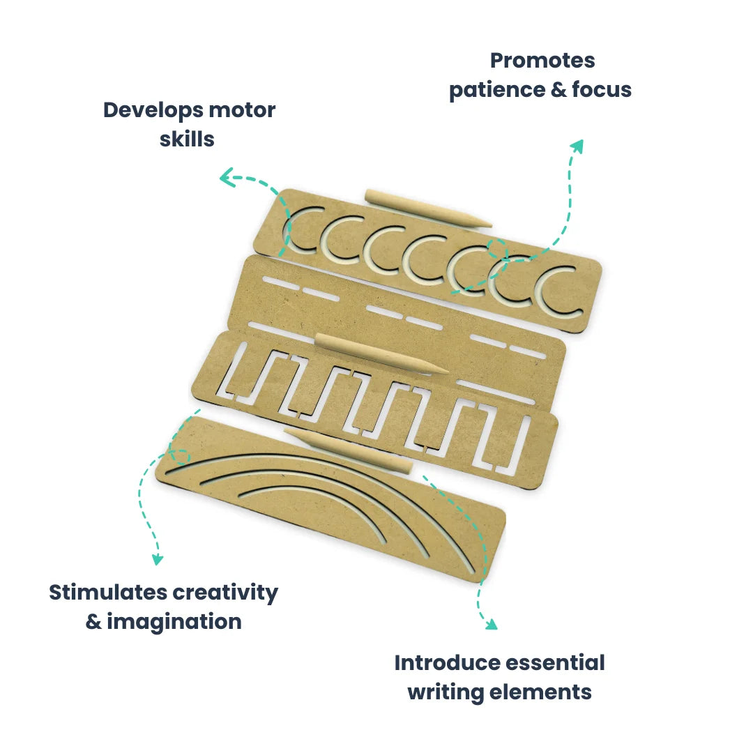 Explore the power of pre-writing skills development Toy and motor skills enhancement with our Wooden Line Tracing Stencil Board. Designed as a valuable Montessori learning resource, this set of 4 prewriting tracing tiles is perfect for young kids for early learning development and to start their writing journey.