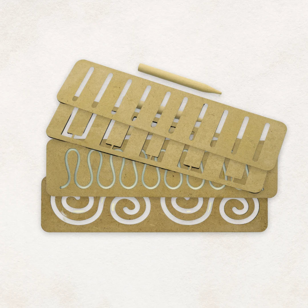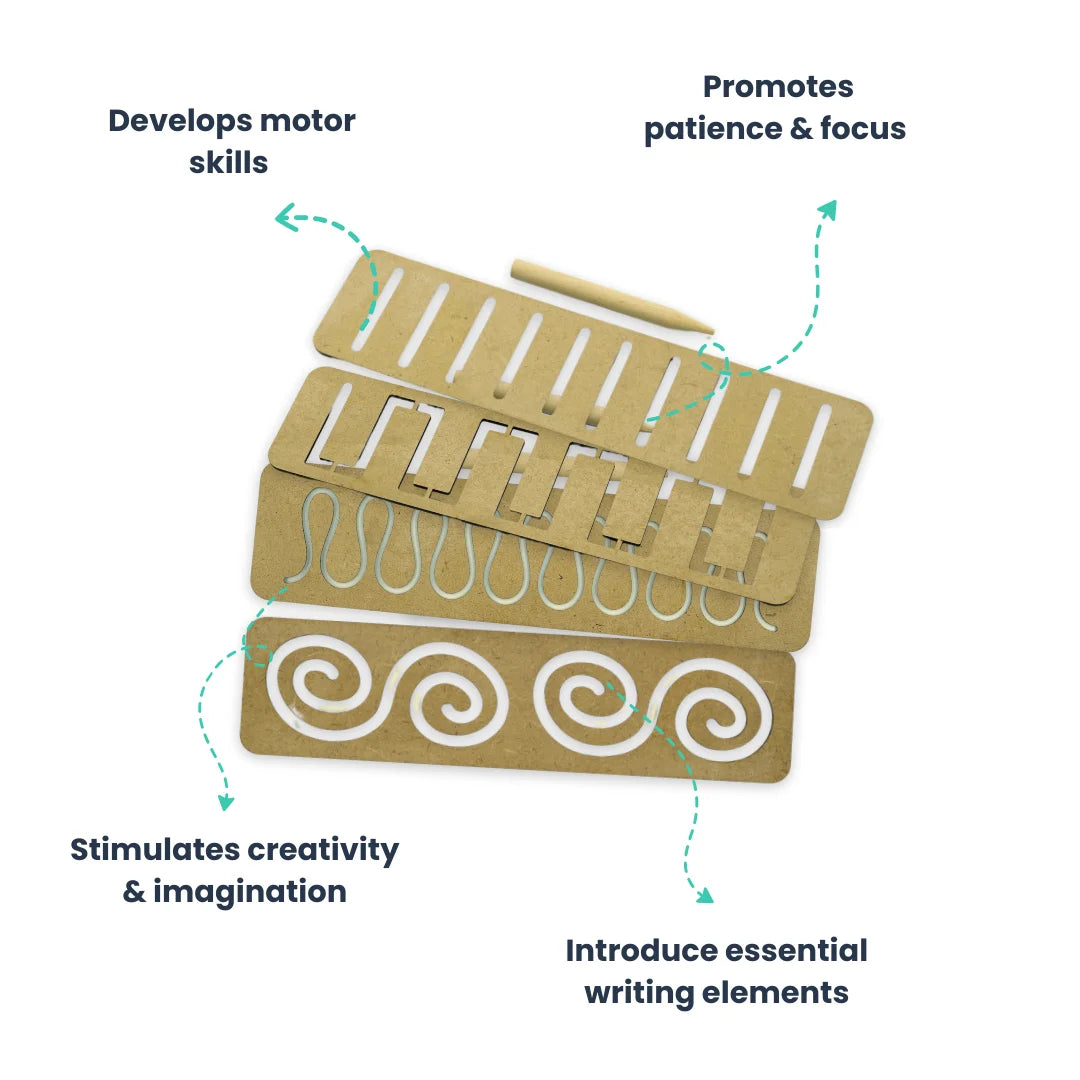 Explore the power of pre-writing skills development Toy and motor skills enhancement with our Wooden Line Tracing Stencil Board. Designed as a valuable Montessori learning resource, this set of 4 prewriting tracing tiles is perfect for young kids for early learning development and to start their writing journey.