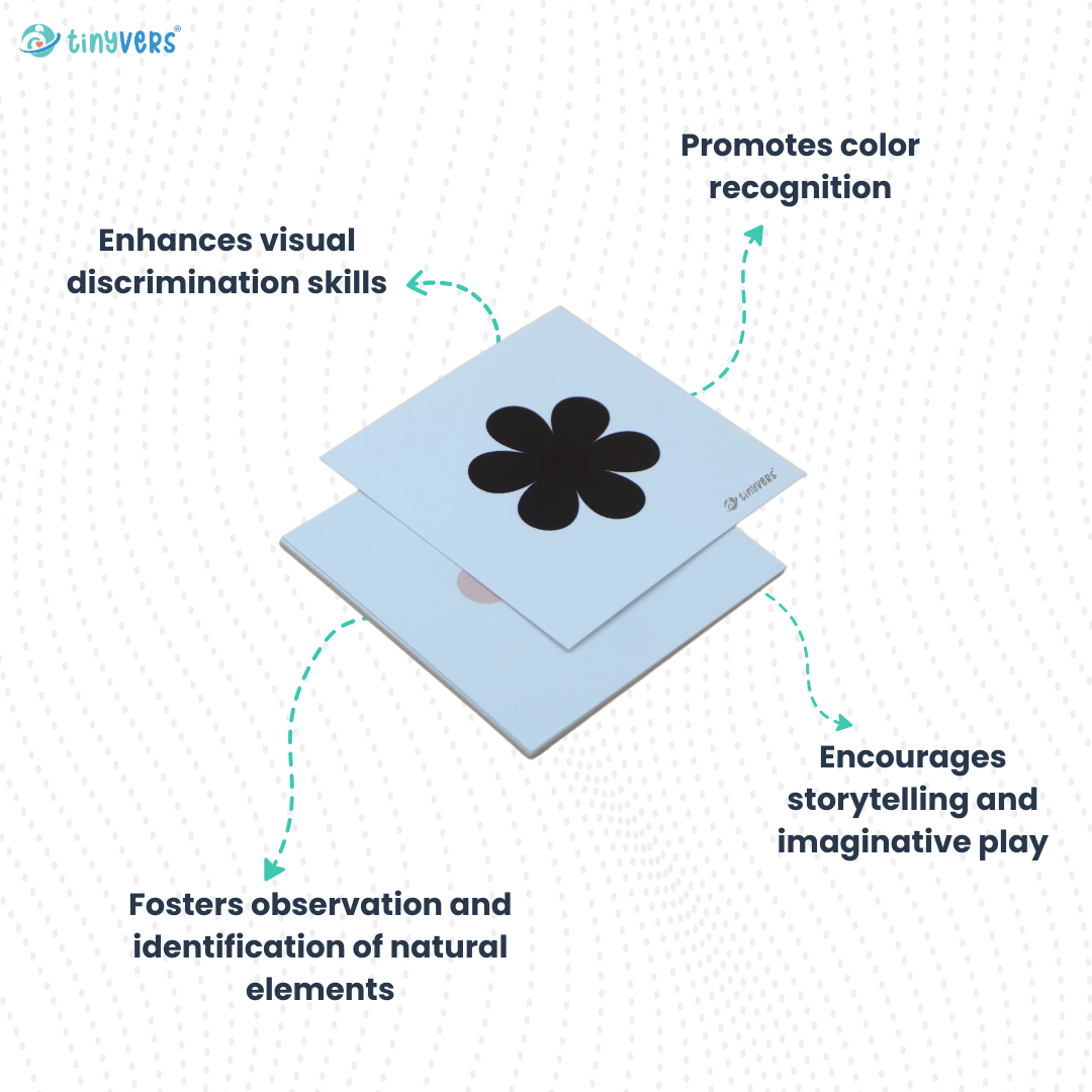 Boost your child's imagination and problem-solving skills with these nature shadow matching cards. The set includes nature & its shadows combination cards. Children can dismantle each card and interconnect its parts with the other cards to create a new and exciting challenge. The objective is to find the correct shadow pattern and assemble them according to the nature card.