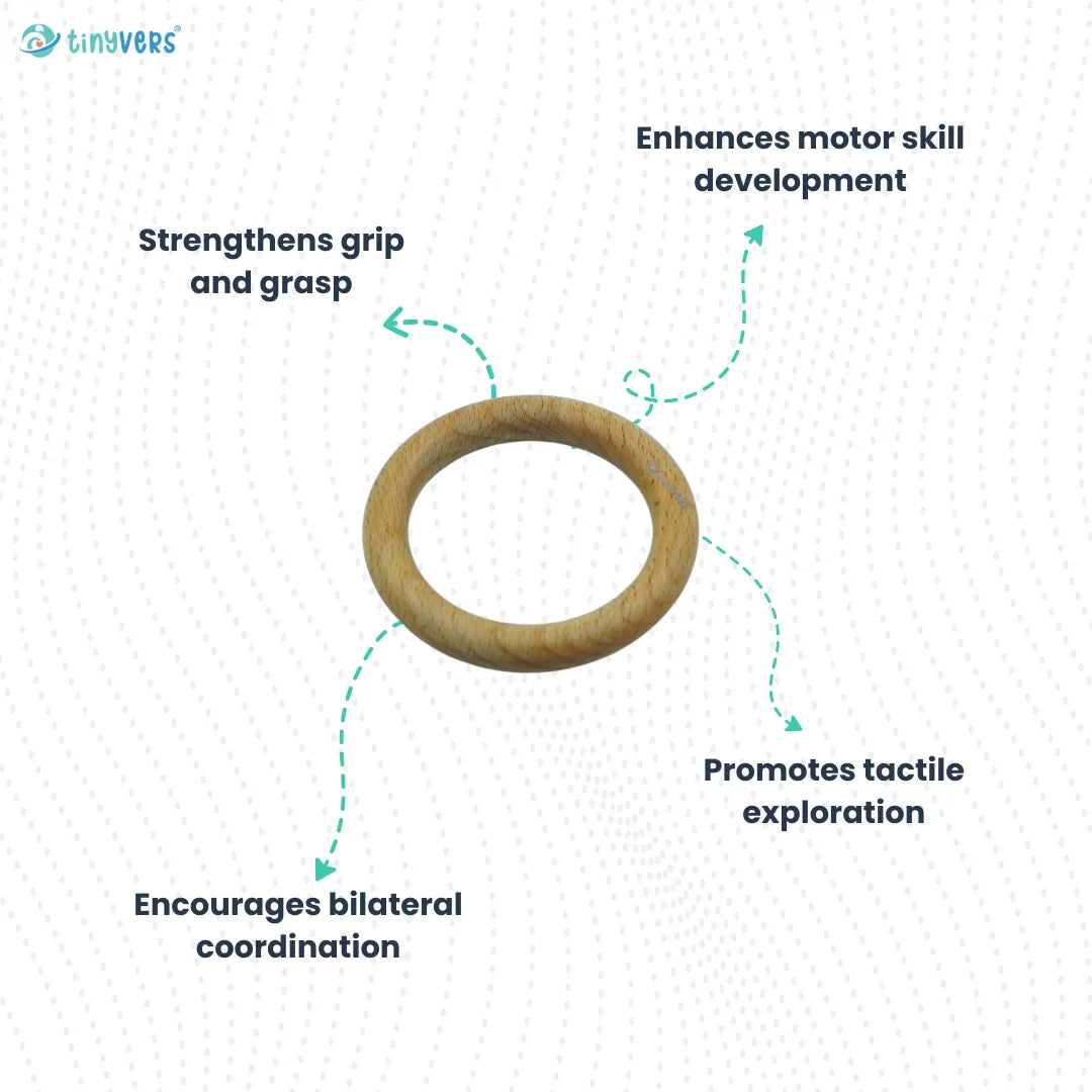 1. Introduce the Wooden Grasping Ring to your baby and allow them to touch and explore it.