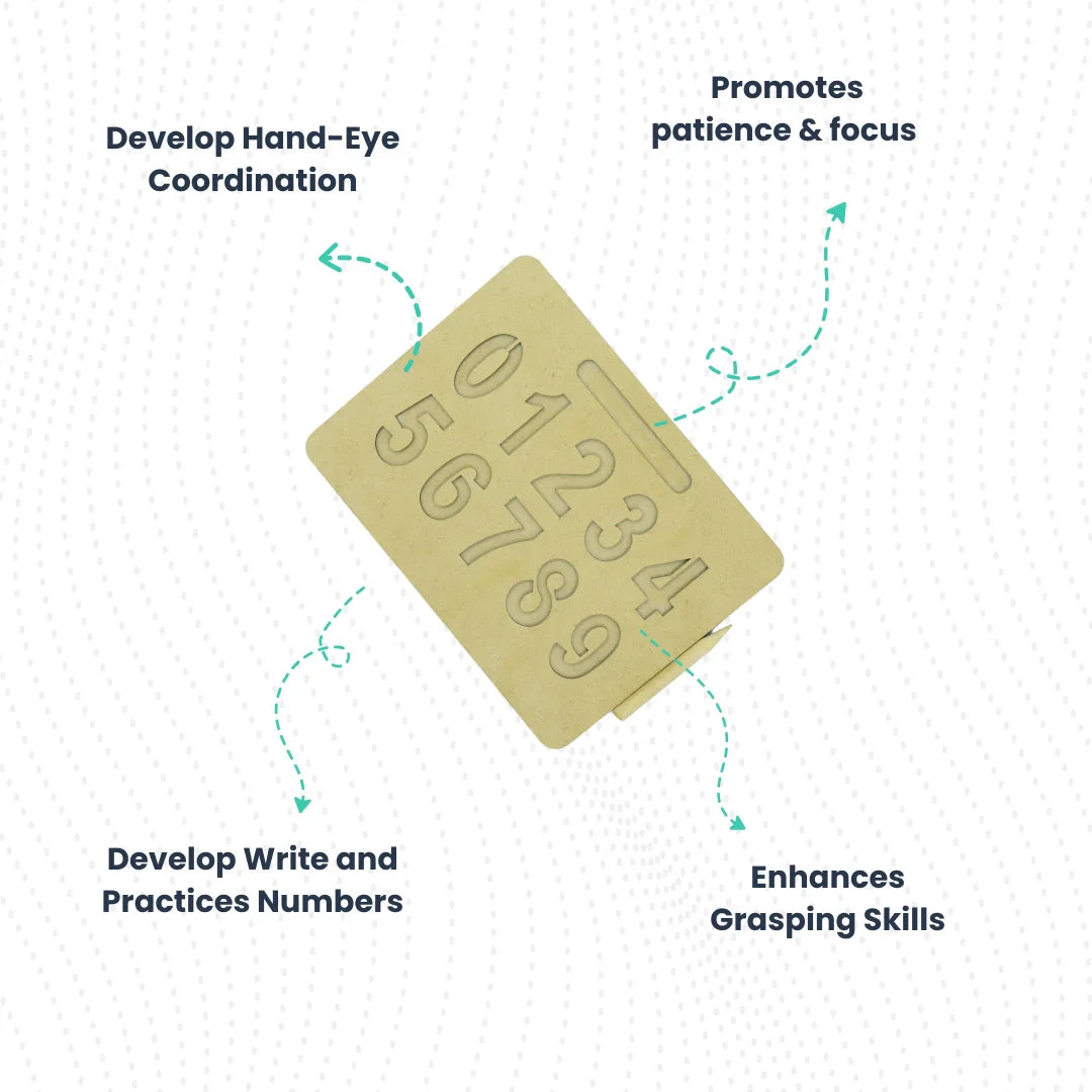This Number Stencil Practice Board for Kids, develops motor skills, strengthen muscle-memory, and introduce essential writing elements & be prepared for preschool.
