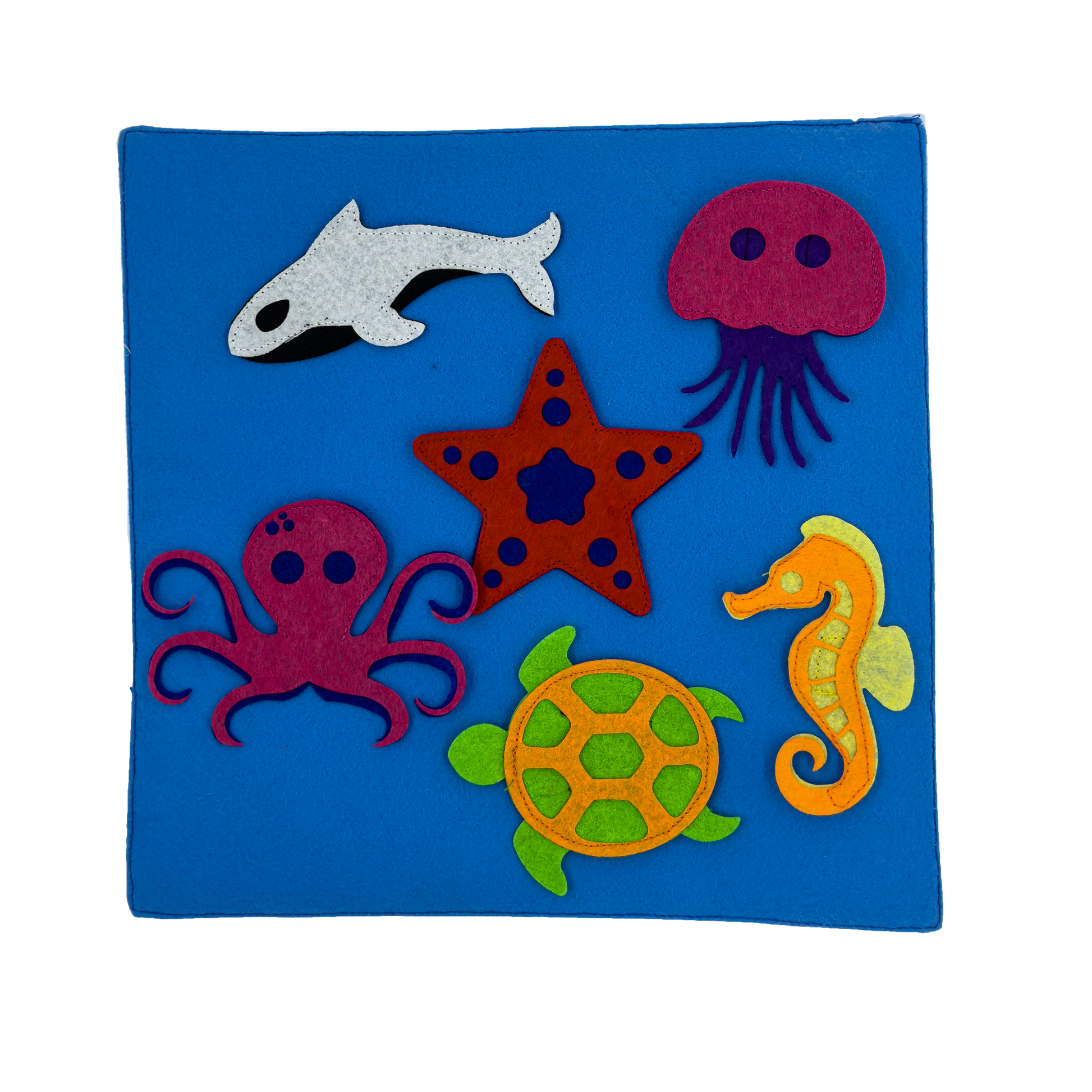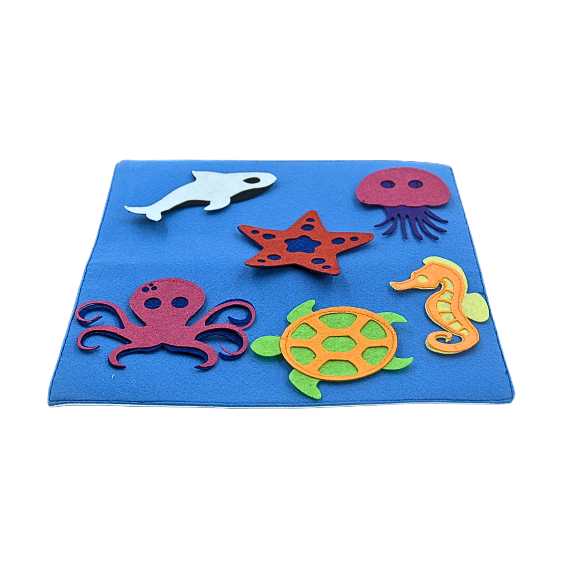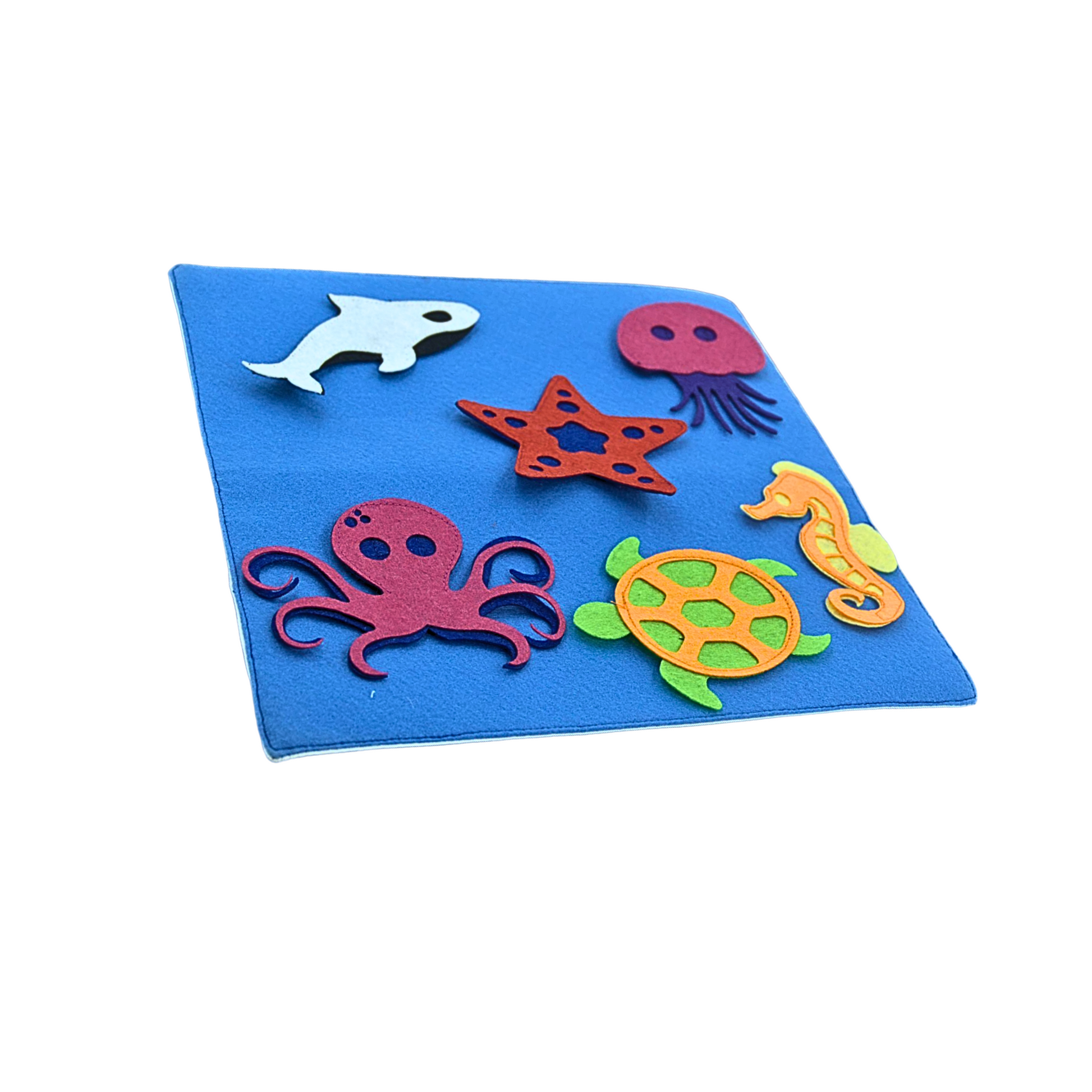 • As children place the sea animal stickers on the felt sea, they can learn about spatial awareness and how objects fit in different spaces.