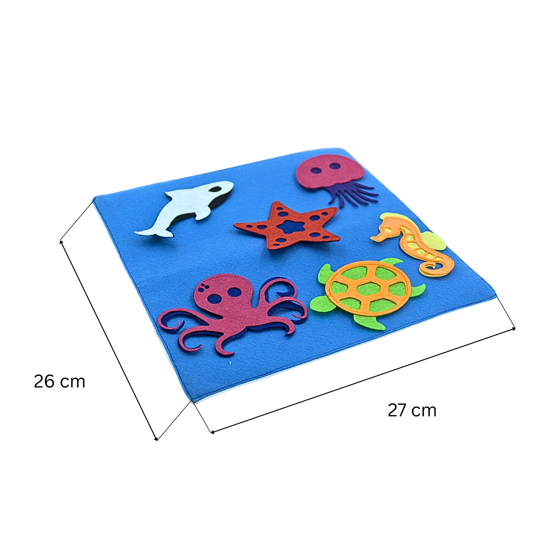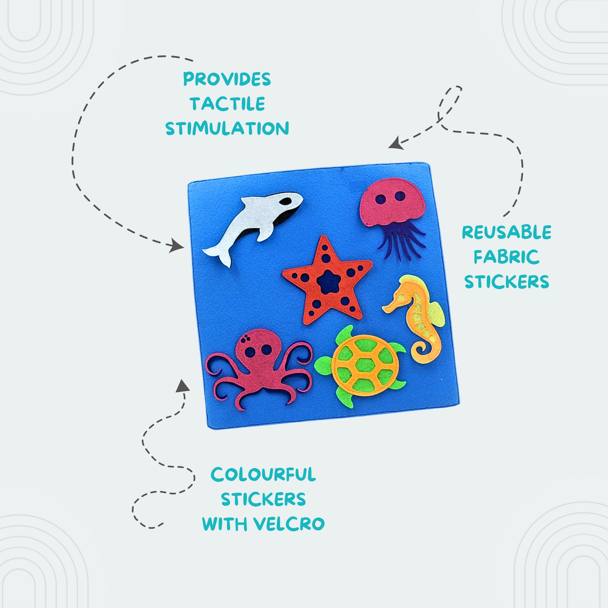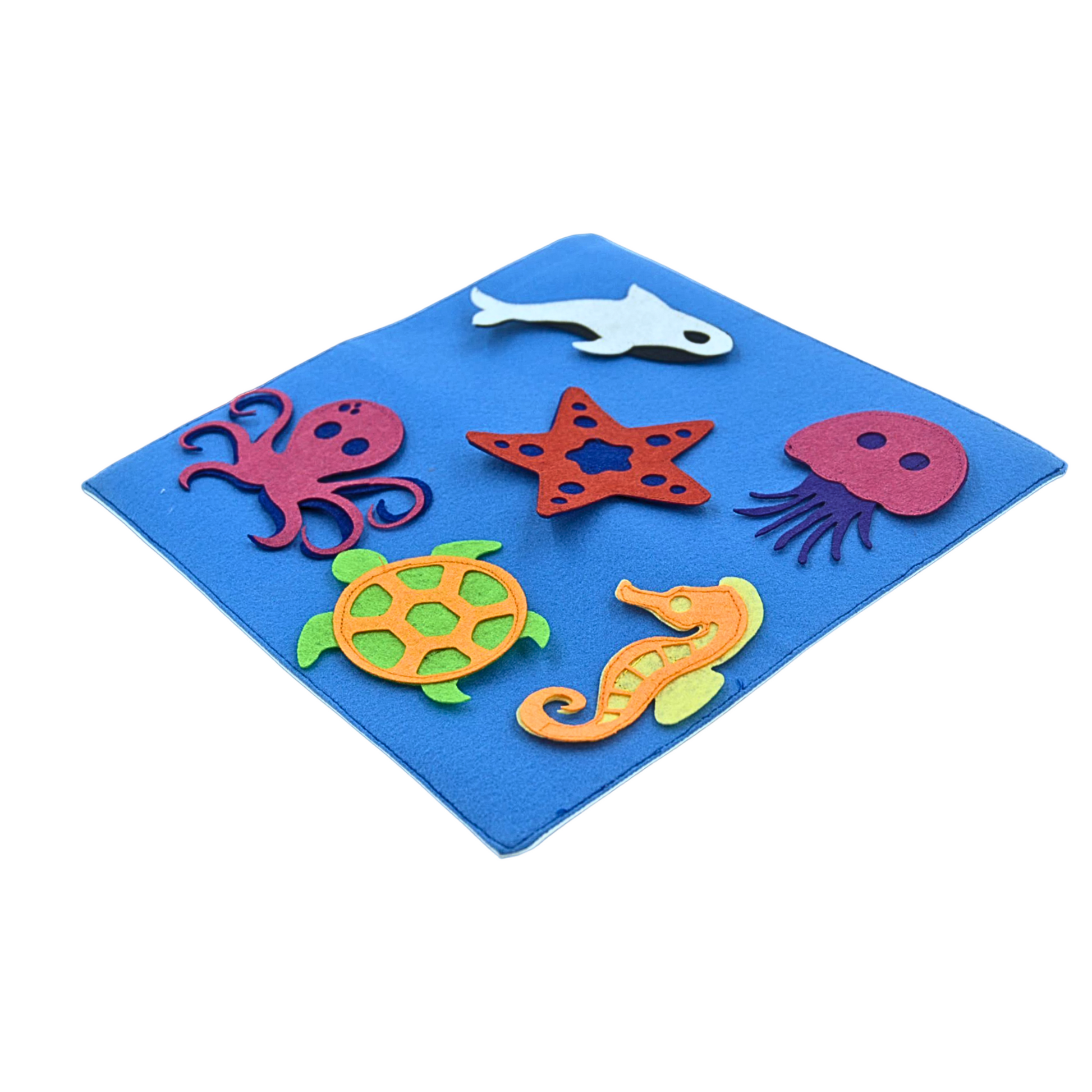 • Sticking the sea animal stickers onto the felt sea helps develop a child's hand-eye coordination and fine motor skills.
