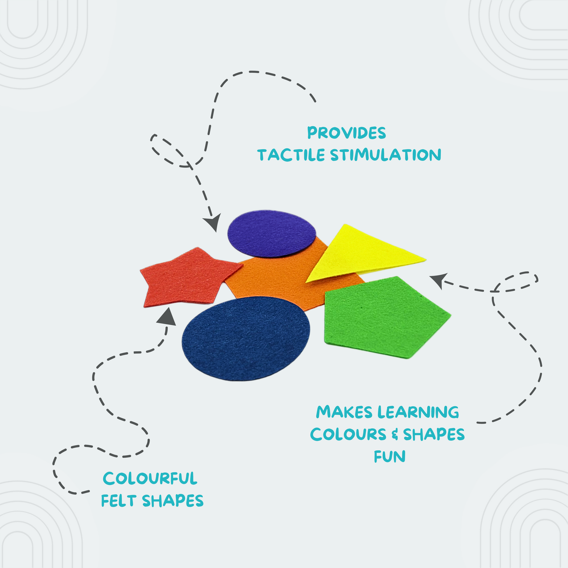 1. Give the felt shapes to your child and encourage them to explore the different shapes and colors.
