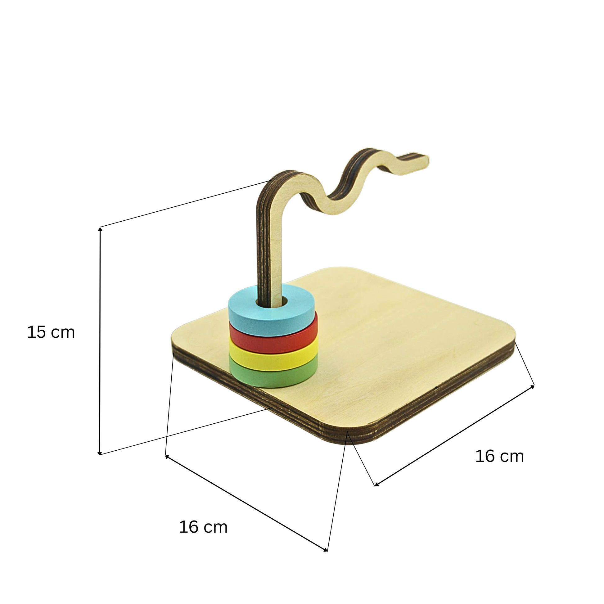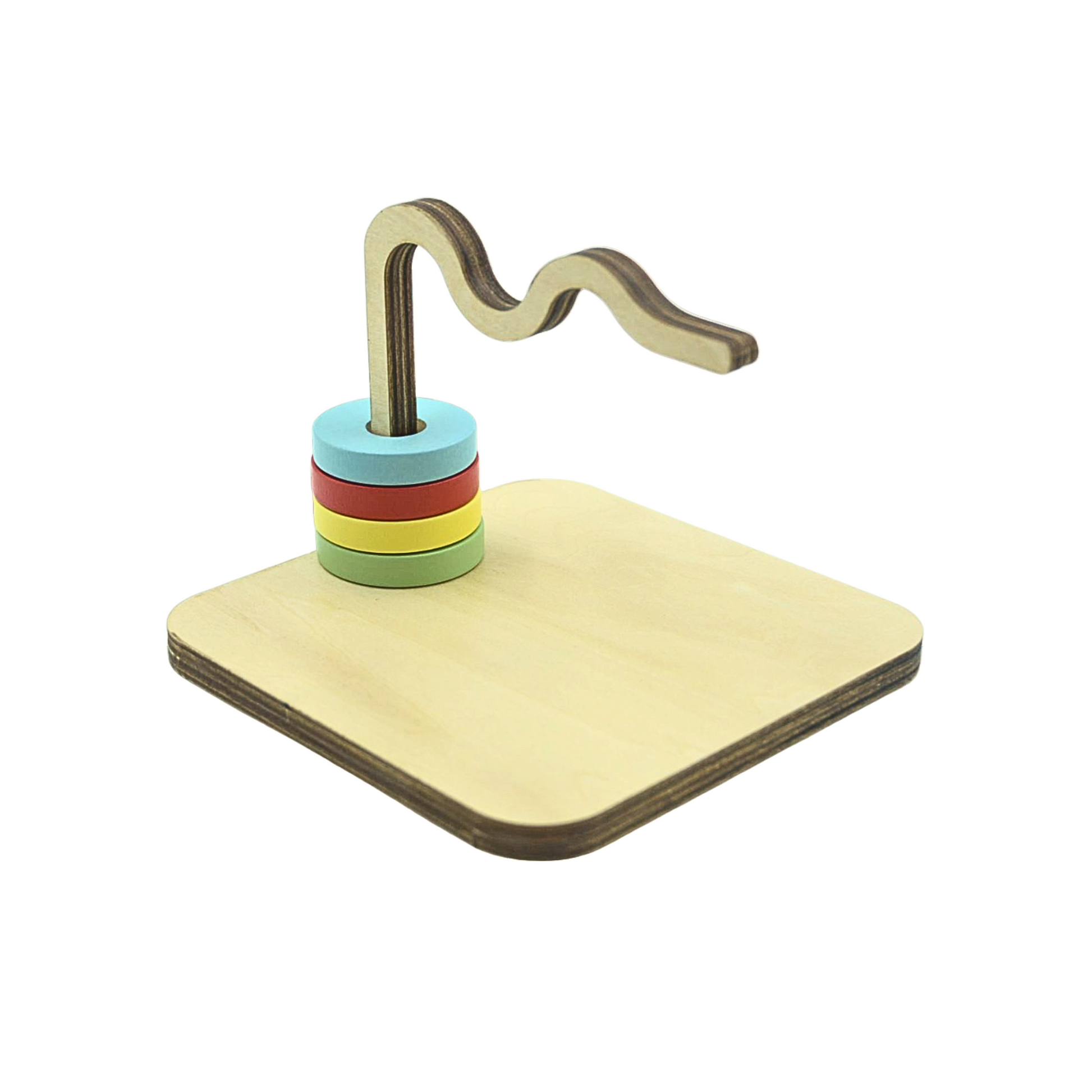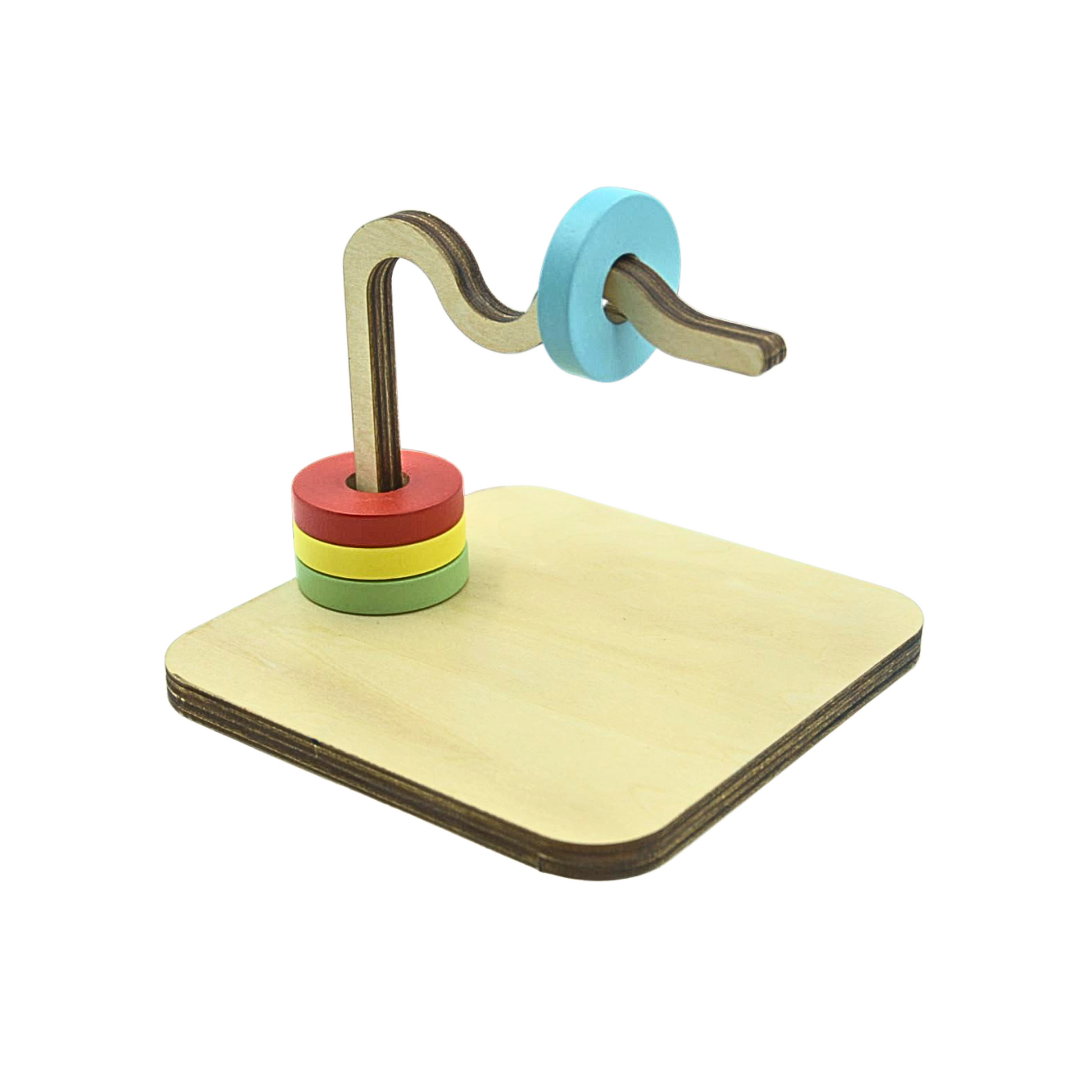 Perfect for playtime and learning, the horizontal dowel for kids consists of a wooden structure with a spiral shaped dowel and four colorful discs. Made from high-quality wood and covered with non-toxic paint, this dowel is sure to delight your child. Plus, the colorful wooden discs slide back and forth along the dowel, providing endless entertainment and stimulation.