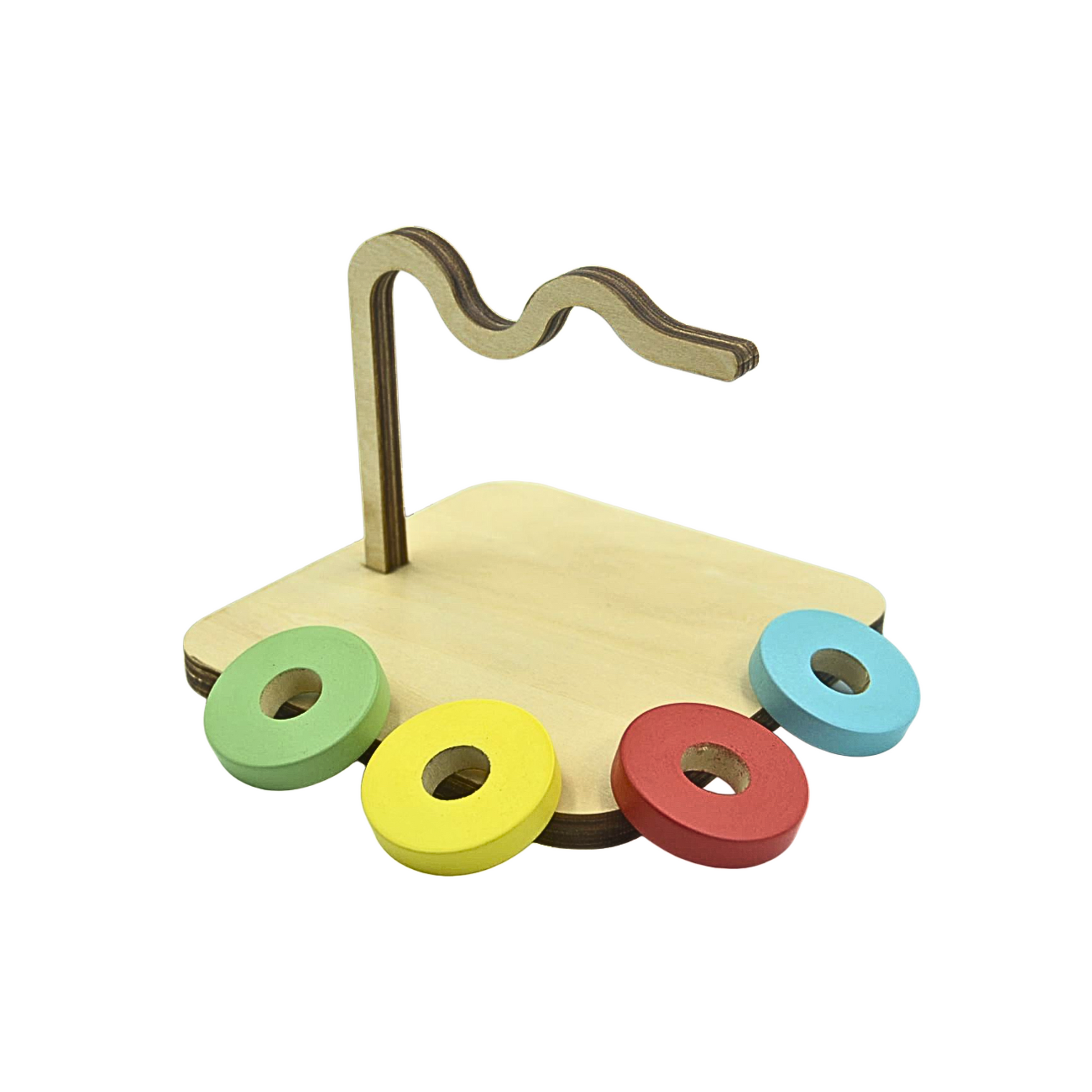 • As there are four wooden discs on the dowel, your child can practice counting and learn basic numbers through play.