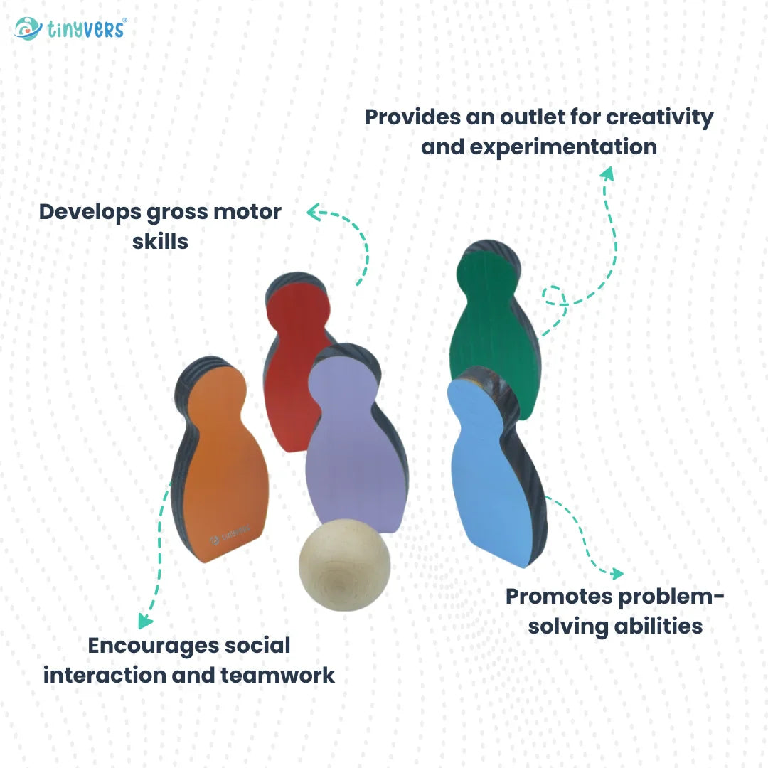 Roll, knock down all the mini bowling pins, and reset for a strikingly fun mini bowling experience, promoting creativity, hand eye coordination and problem-solving skills.