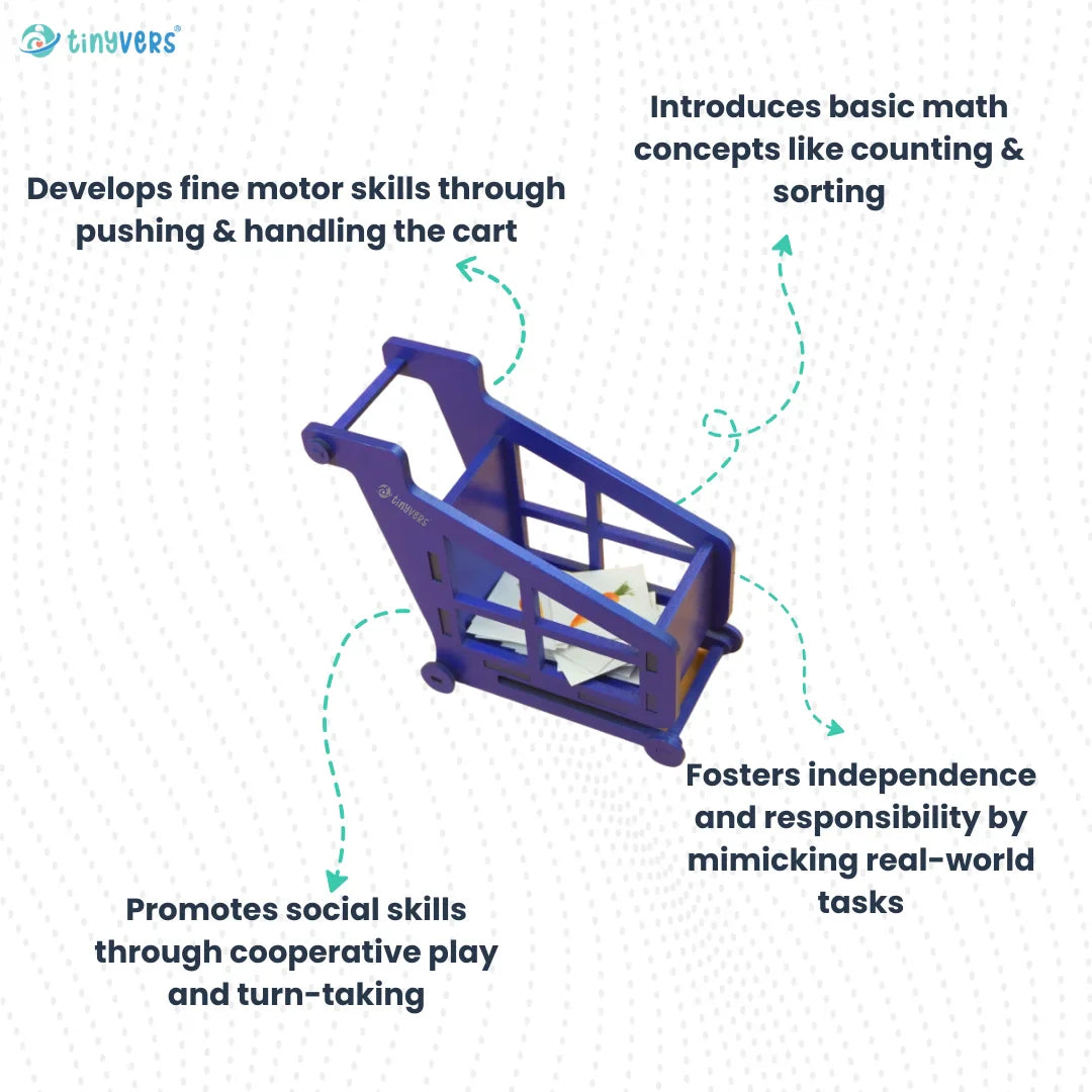 • Develops fine motor skills through pushing and handling the cart.