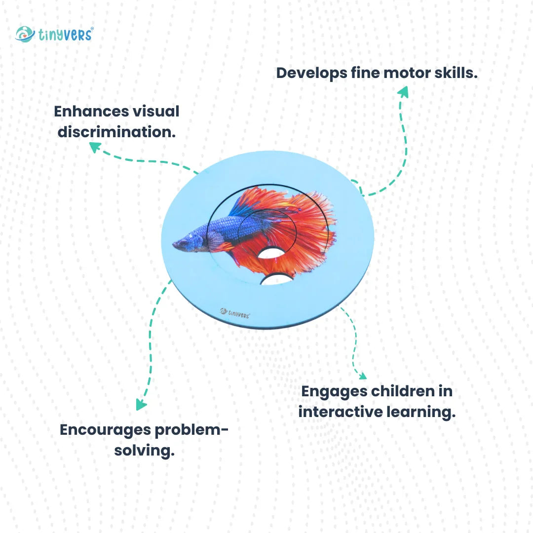 This Wooden Slide the circle concentric Puzzle of Duck & Fish sparks the imagination with creative play in kids. This Puzzle fosters curiosity and creativity putting the jigsaw pieces together and also boost their memory & cognitive skills at an early age.