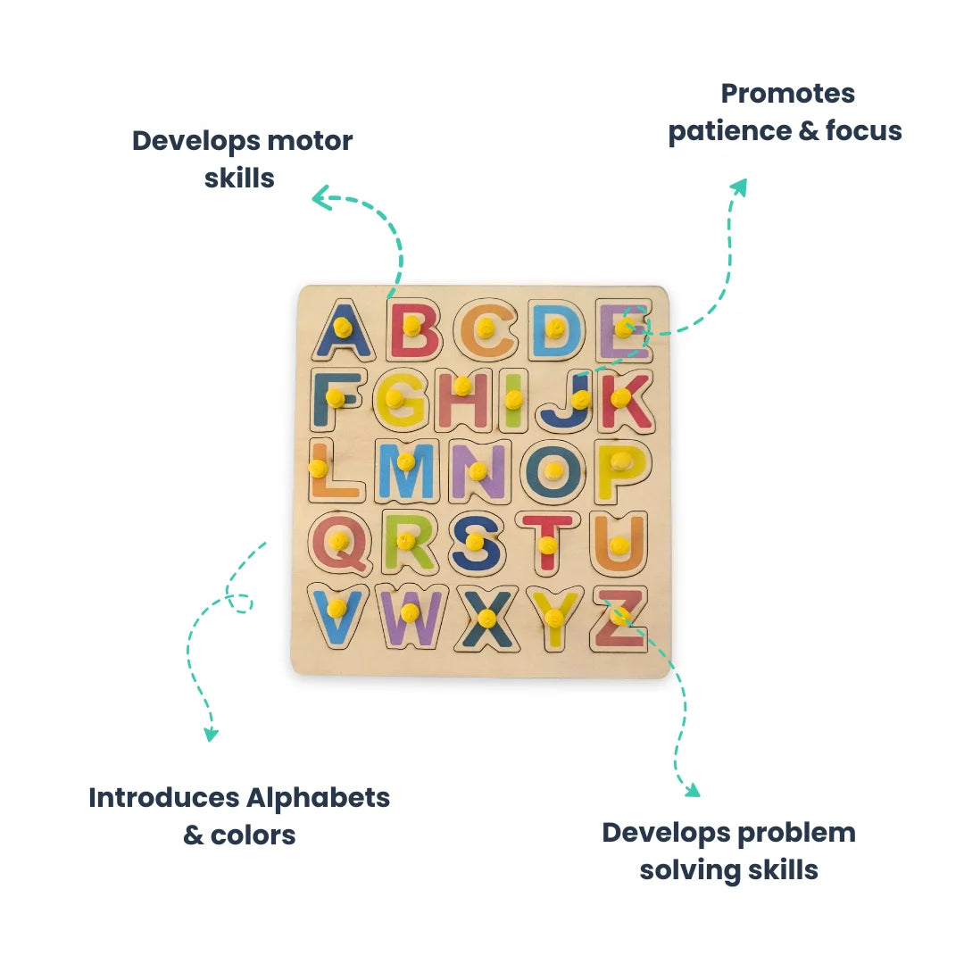 Wooden Alphabets learning Educational Puzzle board Activity Toy|Matching & Sorting Board Puzzle for Pre-School Toddler Baby|Birthday Gift for 3+