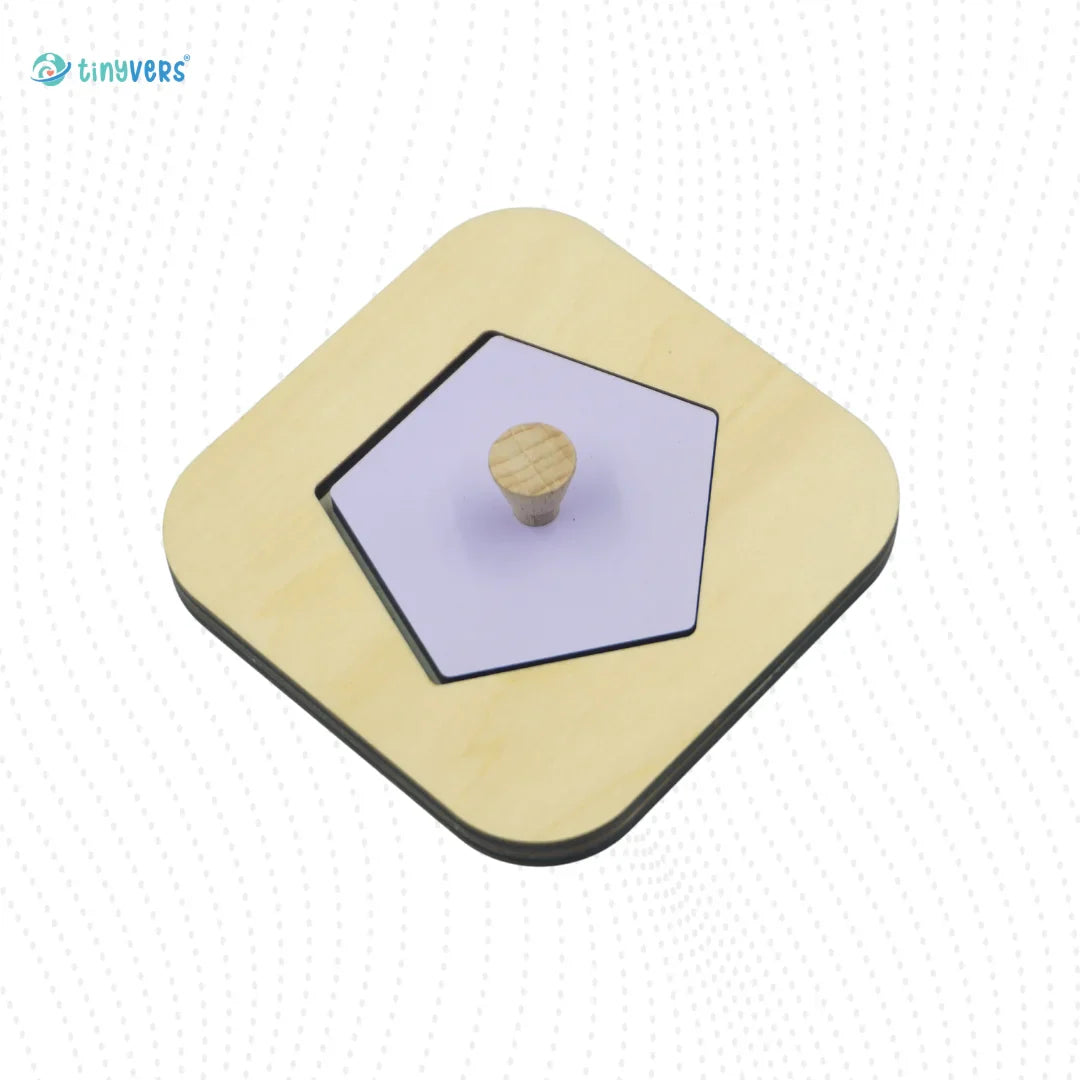 A very simple geometric Pentagon puzzle board for introducing to grasping objects and placing them in slots, Introduces shape, color and helps in hand and eye coordination.