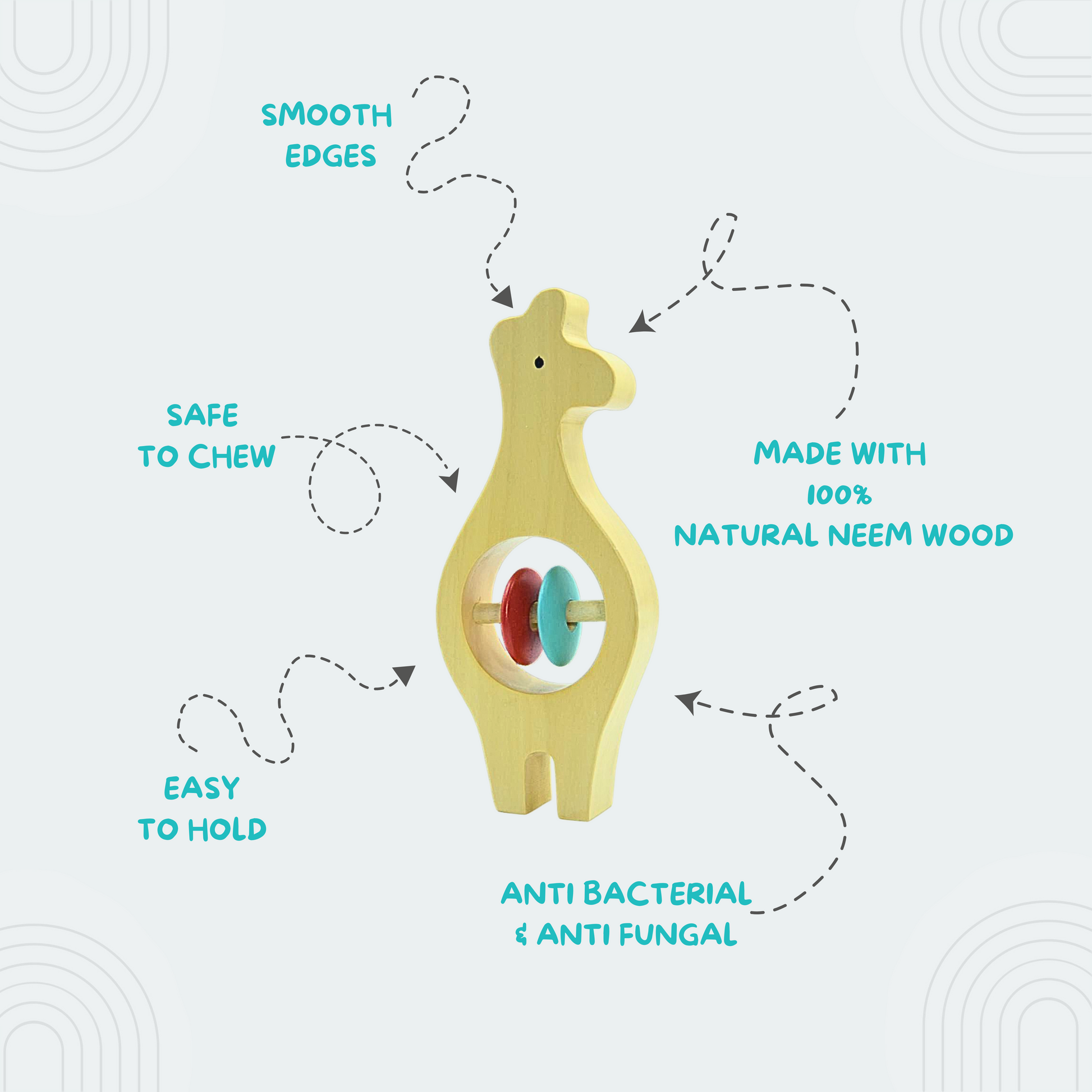 1. Introduce the giraffe-shaped wooden rattle to your kid.