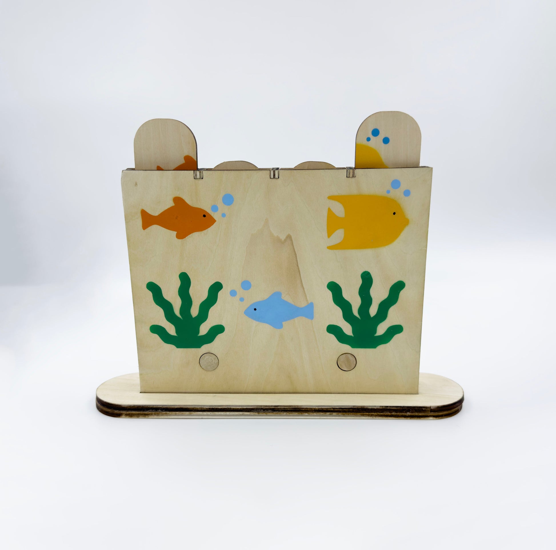Enhance your child's creativity with this 2-in-1 wooden popping toy. In addition to the popping up feature, the toy also has an extra feature where all the pegs can be taken out and assembled in the correct order to reveal the image displayed on the wooden frame. Crafted from 100% natural wood and coated with non-toxic paints, this toy is safe and durable for your child to play with.
