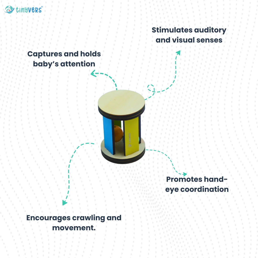 Crafted from high-quality wood, this Wooden Rolling Rattle is an ideal tool to engage toddlers while improving their sensory development. The toy has a smooth, rounded surface and comes in lively colors that captivate young children. They will enjoy rolling it and observing the rotating patterns, sound and colors. Plus, its compact size makes it perfect for on-the-go entertainment, easy for small hands to hold.