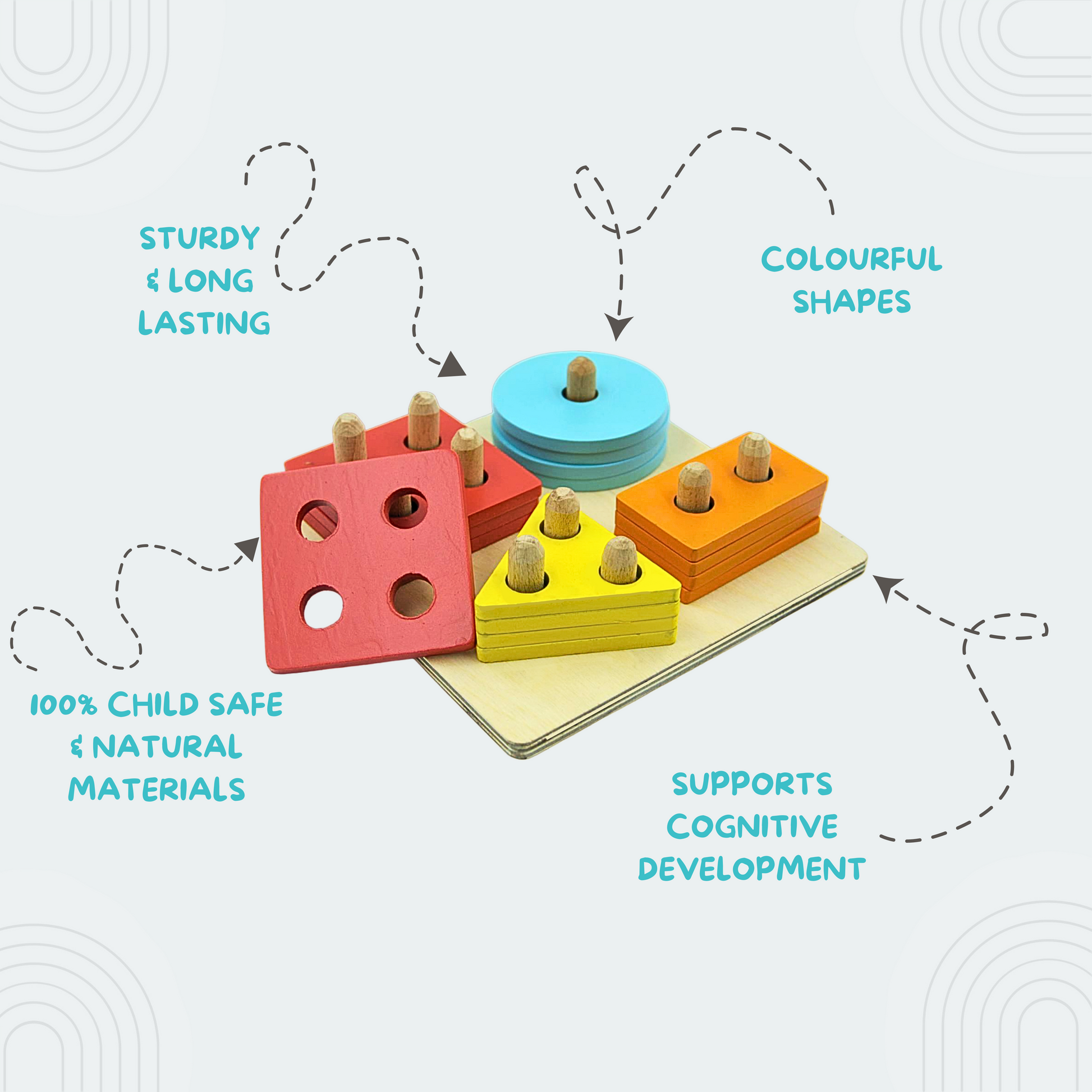 3. Encourage your toddler to correctly sort and stack all the shapes.