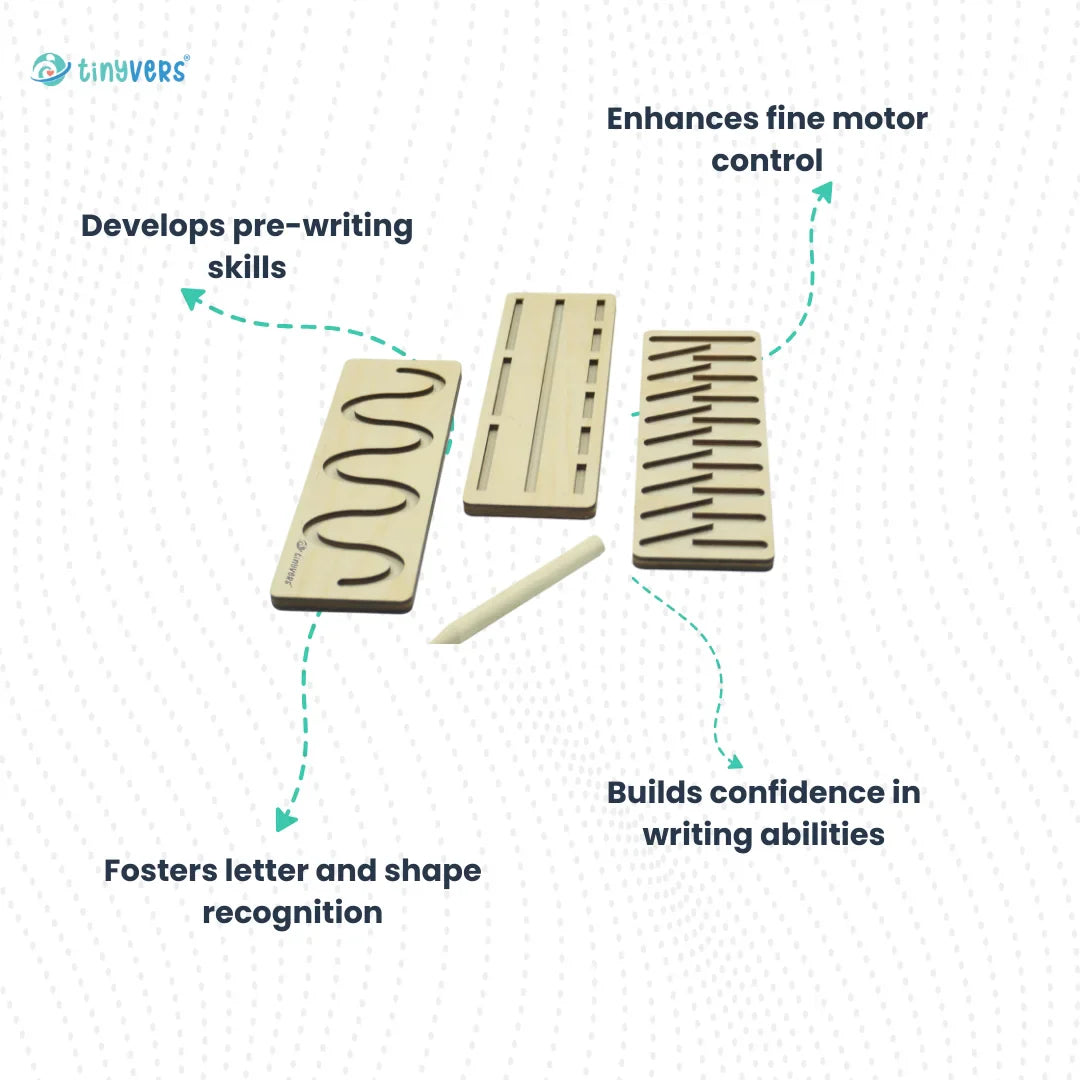 These Stencil Practice Boards for Kids, develops motor skills, strengthen muscle-memory, and introduce essential writing elements & be prepared for preschool.